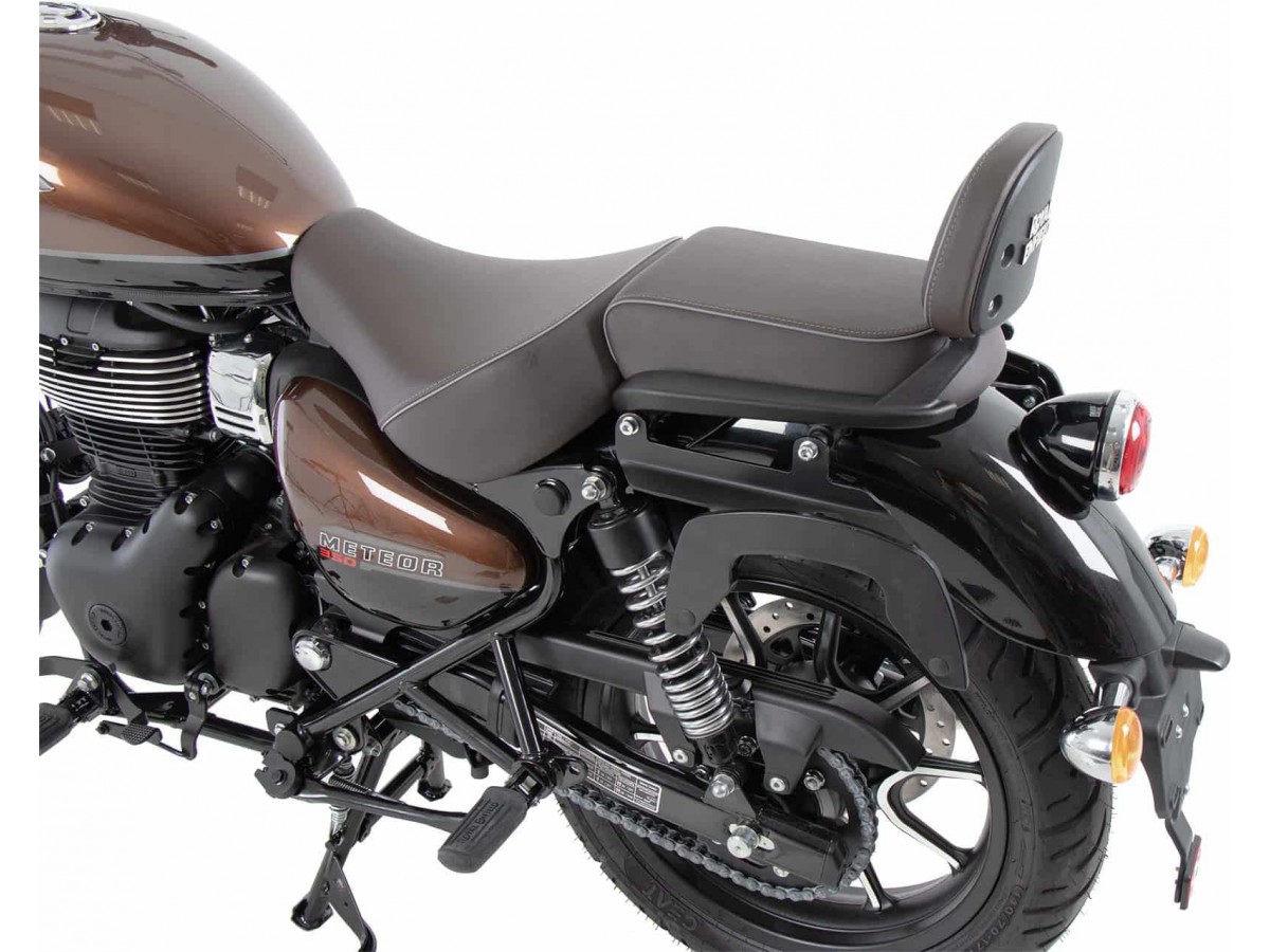 Sakwy boczne C-Bow do Royal Enfield Meteor 350 (2021-). Uchwyt na torby C-Bow jest przeznaczony do różnych toreb Hepco&Becker, w zależności od modelu motocykla. Torby miękkie do sportowych, dynamicznych motocykli oraz sakwy do chopperów i cruiserów można przymocować do motocykla za pomocą uchwytu C-Bow. Jego elegancki, dyskretny design idealnie wpasowuje się w ogólną linię pojazdu. Naturalnie, utrzymuje sakwy z dala od rozgrzanego tłumika. Nowoczesna technologia C-Bow pozwala na proste i łatwe przymocowanie odpowiednich toreb do C-Bow jednym kliknięciem, co zapewnia ich solidne zablokowanie, co zniechęca do kradzieży. Torby są bezpiecznie przymocowane do motocykla i pozostają na swoim miejscu nawet po załadowaniu. W wielu modelach kierunkowskazy pozostają w swojej pierwotnej pozycji. Więcej informacji można znaleźć w instrukcji obsługi. Specjalny bagażnik tylko do toreb i kufrów Hepco&Becker C-Bow Standardowy twardy bagaż Hepco&Becker nie pasuje do toreb Krauser K-Wing Wysokiej jakości wykończenie powierzchni Dostawa: prawa strona, lewa strona, zestaw montażowy, instrukcja Łatwy montaż Zwykle można łączyć z bagażnikami na kufry górne, sissybar lub bagażnikami solo (sprawdź instrukcję i informacje dotyczące konkretnego modelu motocykla) Powiększenie tylnego bagażnika może ograniczyć funkcjonalność toreb Zaprojektowane dla fabrycznego stanu maszyny. Nie testowano z akcesoriami takimi jak wydech, uchwyt tablicy rejestracyjnej lub inne kierunkowskazy. Używając akcesoriów innych firm, upewnij się, że torby są zawsze trzymane w odpowiedniej odległości od wydechu i że kierunkowskazy mają odpowiedni kąt wiązki. Strumień spalin nie może być skierowany na torby.