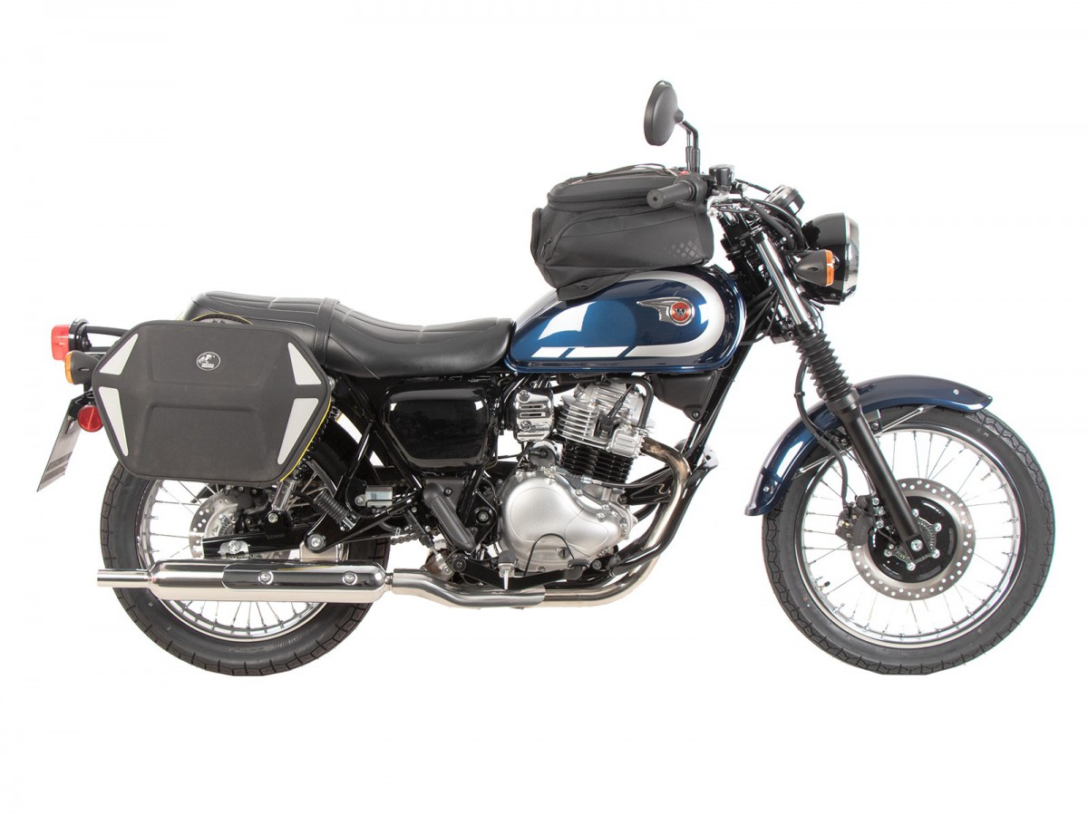 Stelaż boczny C-Bow do Kawasaki W230 / Meguro S1 (2025-). Uchwyt na kufry C-Bow jest przeznaczony do różnych kufrów Hepco&Becker, w zależności od modelu motocykla. Za pomocą uchwytu C-Bow można przymocować miękkie sakwy do sportowych, dynamicznych motocykli oraz sakwy do chopperów i cruiserów. Elegancki, dyskretny design idealnie wpasowuje się w ogólną linię pojazdu. Naturalnie, sakwy boczne bezpiecznie trzymają się z dala od rozgrzanego tłumika. Nowoczesna technologia C-Bow pozwala na proste i łatwe przymocowanie odpowiednich kufrów do C-Bow jednym kliknięciem, co skutecznie blokuje je, uniemożliwiając kradzież. Kufry są bezpiecznie przymocowane do motocykla i pozostają na swoim miejscu nawet po załadowaniu. W wielu modelach kierunkowskazy pozostają w swojej pierwotnej pozycji. Więcej informacji można znaleźć w instrukcji obsługi. Specjalny bagażnik tylko do toreb i kufrów Hepco&Becker C-Bow Standardowy twardy bagaż Hepco&Becker nie pasuje do toreb Krauser K-Wing Wysokiej jakości wykończenie powierzchni Dostawa: prawa strona, lewa strona, zestaw montażowy, instrukcja Łatwy montaż Zwykle można łączyć z bagażnikami na kufry górne, sissybar lub bagażnikami solo (sprawdź instrukcję i informacje dotyczące konkretnego modelu motocykla) Powiększenie tylnego bagażnika może ograniczyć funkcjonalność toreb Zaprojektowane dla fabrycznego stanu maszyny. Nie testowano z akcesoriami takimi jak wydech, uchwyt tablicy rejestracyjnej lub inne kierunkowskazy. Używając akcesoriów innych firm, upewnij się, że torby są zawsze trzymane w odpowiedniej odległości od wydechu i że kierunkowskazy mają odpowiedni kąt wiązki. Strumień spalin nie może być skierowany na torby.
