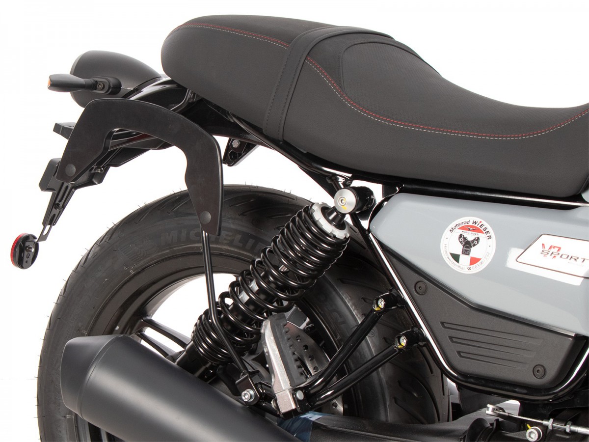 Stelaż boczny C-Bow do Moto Guzzi V7 Stone (2025-). Uchwyt na kufry C-Bow jest przeznaczony do różnych kufrów Hepco&Becker, w zależności od modelu motocykla. Za pomocą uchwytu C-Bow można przymocować miękkie sakwy do sportowych, dynamicznych motocykli oraz sakwy do chopperów i cruiserów. Elegancki, dyskretny design idealnie wpasowuje się w ogólną linię pojazdu. Naturalnie, sakwy boczne bezpiecznie trzymają się z dala od rozgrzanego tłumika. Nowoczesna technologia C-Bow pozwala na proste i łatwe przymocowanie odpowiednich kufrów do C-Bow jednym kliknięciem, co skutecznie blokuje je, uniemożliwiając kradzież. Kufry są bezpiecznie przymocowane do motocykla i pozostają na swoim miejscu nawet po załadowaniu. W wielu modelach kierunkowskazy pozostają w swojej pierwotnej pozycji. Więcej informacji można znaleźć w instrukcji obsługi. Specjalny bagażnik tylko do toreb i kufrów Hepco&Becker C-Bow Standardowy twardy bagaż Hepco&Becker nie pasuje do toreb Krauser K-Wing Wysokiej jakości wykończenie powierzchni Dostawa: prawa strona, lewa strona, zestaw montażowy, instrukcja Łatwy montaż Zwykle można łączyć z bagażnikami na kufry górne, sissybar lub bagażnikami solo (sprawdź instrukcję i informacje dotyczące konkretnego modelu motocykla) Powiększenie tylnego bagażnika może ograniczyć funkcjonalność toreb Zaprojektowane dla fabrycznego stanu maszyny. Nie testowano z akcesoriami takimi jak wydech, uchwyt tablicy rejestracyjnej lub inne kierunkowskazy. Używając akcesoriów innych firm, upewnij się, że torby są zawsze trzymane w odpowiedniej odległości od wydechu i że kierunkowskazy mają odpowiedni kąt wiązki. Strumień spalin nie może być skierowany na torby.