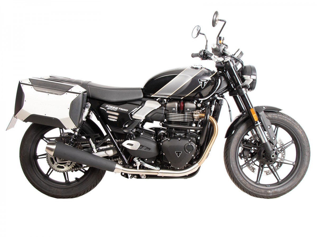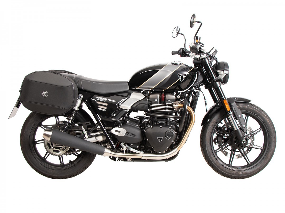 Stelaż boczny C-Bow do Triumph Speed Twin 900 (2025-). Uchwyt na kufry C-Bow jest przeznaczony do różnych kufrów Hepco&Becker, w zależności od modelu motocykla. Za pomocą uchwytu C-Bow można przymocować miękkie sakwy do sportowych, dynamicznych motocykli oraz sakwy do chopperów i cruiserów. Elegancki, dyskretny design idealnie wpasowuje się w ogólną linię pojazdu. Naturalnie, sakwy boczne bezpiecznie trzymają się z dala od rozgrzanego tłumika. Nowoczesna technologia C-Bow pozwala na proste i łatwe przymocowanie odpowiednich kufrów do C-Bow jednym kliknięciem, co skutecznie blokuje je, uniemożliwiając kradzież. Kufry są bezpiecznie przymocowane do motocykla i pozostają na swoim miejscu nawet po załadowaniu. W wielu modelach kierunkowskazy pozostają w swojej pierwotnej pozycji. Więcej informacji można znaleźć w instrukcji obsługi. Specjalny bagażnik tylko do toreb i kufrów Hepco&Becker C-Bow Standardowy twardy bagaż Hepco&Becker nie pasuje do toreb Krauser K-Wing Wysokiej jakości wykończenie powierzchni Dostawa: prawa strona, lewa strona, zestaw montażowy, instrukcja Łatwy montaż Zwykle można łączyć z bagażnikami na kufry górne, sissybar lub bagażnikami solo (sprawdź instrukcję i informacje dotyczące konkretnego modelu motocykla) Powiększenie tylnego bagażnika może ograniczyć funkcjonalność toreb Zaprojektowane dla fabrycznego stanu maszyny. Nie testowano z akcesoriami takimi jak wydech, uchwyt tablicy rejestracyjnej lub inne kierunkowskazy. Używając akcesoriów innych firm, upewnij się, że torby są zawsze trzymane w odpowiedniej odległości od wydechu i że kierunkowskazy mają odpowiedni kąt wiązki. Strumień spalin nie może być skierowany na torby.
