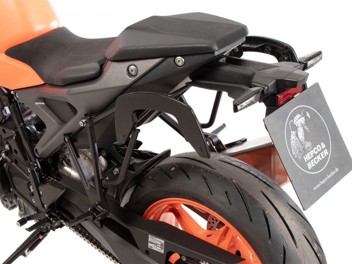 Uchwyt na kufry C-Bow jest przeznaczony do różnych kufrów Hepco&Becker, w zależności od modelu motocykla. Za pomocą uchwytu C-Bow można przymocować miękkie sakwy do sportowych, dynamicznych motocykli oraz sakwy do chopperów i cruiserów. Jego elegancki, dyskretny design idealnie wpasowuje się w ogólną linię pojazdu. Naturalnie, sakwy są bezpiecznie trzymane z dala od rozgrzanego tłumika. Nowoczesna technologia C-Bow pozwala na proste i łatwe przymocowanie odpowiednich kufrów do C-Bow jednym kliknięciem, co skutecznie je blokuje, uniemożliwiając kradzież. Kufry są bezpiecznie przymocowane do motocykla i pozostają na swoim miejscu nawet po załadowaniu. W wielu modelach kierunkowskazy pozostają w swojej pierwotnej pozycji. Proszę sprawdzić instrukcję, aby uzyskać więcej informacji. Specjalny bagażnik przeznaczony wyłącznie do toreb i pudeł Hepco&Becker C-Bow. Standardowy twardy bagażnik Hepco&Becker nie pasuje. Twardy bagażnik Krauser K-Wing nie pasuje. Łatwy montaż. Dostawa: prawa strona, lewa strona, zestaw montażowy, instrukcja. Zalecane obciążenie: 5 kg na torbę (więcej informacji można znaleźć w instrukcji lub u producenta motocykla). Można go łączyć głównie z bagażnikiem na kufer centralny, sissybar lub innym tylnym bagażnikiem (więcej informacji można znaleźć w instrukcji lub u producenta konkretnego modelu motocykla). Powiększenie tylnego bagażnika może ograniczyć funkcjonalność toreb.