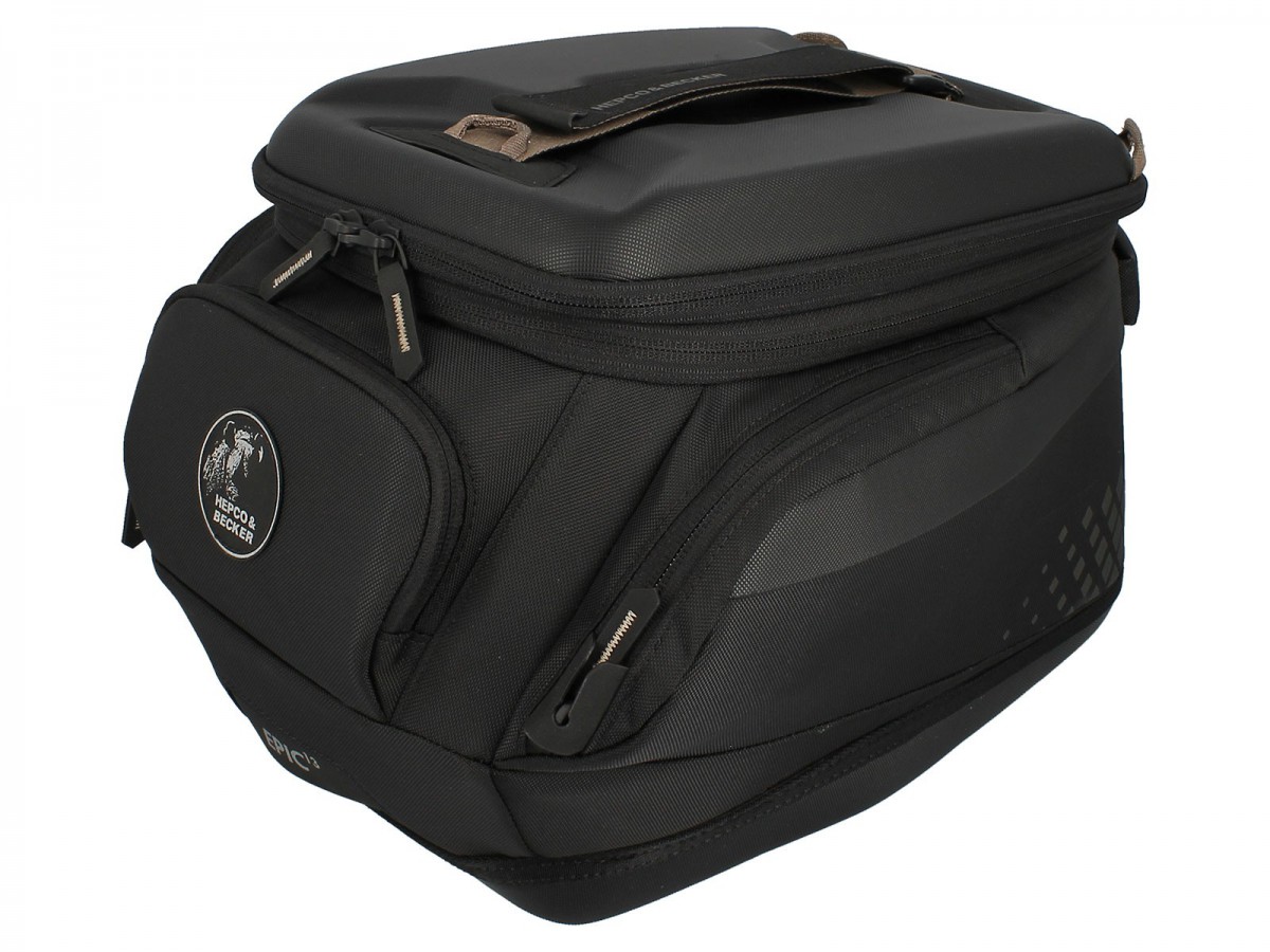 Uniwersalne dopasowanie: do montażu na jednym z ponad 400 modeli pierścieni zbiornika Hepco & Becker Stabilne wymiarowo dzięki piankom EVA o wysokiej gęstości, odpornemu na rozdarcie Hypalonowi i balistycznemu poliestrowi 840D. Zamykane zamki błyskawiczne Wytrzymały uchwyt Wodoodporny materiał zewnętrzny Dodatkowe przegrody z siateczką wewnątrz pokrywy Małe odblaskowe detale zapewniające lepszą widoczność w ruchu drogowym Wyjmowany, wodoodporny worek wewnętrzny z zamknięciem typu roll-top — łatwe zdejmowanie za pomocą zatrzasków Zwiększenie objętości dzięki zamkowi błyskawicznemu na całym obwodzie Pętle na tankbagu do mocowania opcjonalnych, indywidualnych akcesoriów, takich jak etui na kartę/smartfon Hepco & Becker Wstępnie zmontowana gwintowana płytka do mocowania zapięcia tankbagu — nie ma potrzeby wiercenia w tankbagu! (zapięcie tankbagu nie jest dołączone, jest dołączone do tankringu)