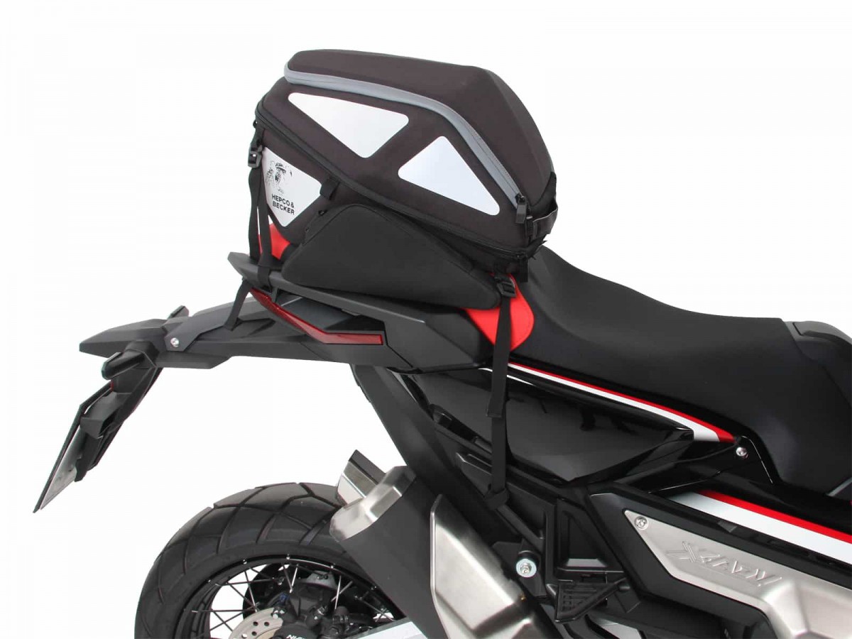Torba tylna Hepco&Becker Royster jest standardowo mocowana do siedzenia pasażera za pomocą niezawodnego 4-punktowego paska mocującego. Dzięki indywidualnym opcjom mocowania torba tylna stanowi idealne rozwiązanie bagażowe dla wielu motocykli sportowych. Zarówno na krótkie, jak i długie podróże, torba tylna Royster oferuje dużo miejsca jako uzupełnienie torby bocznej Royster i torby na zbiornik paliwa. W zestawie pasujące paski do mocowania z tyłu motocykla, na elementach ramy lub podnóżkach. Nadaje się do kasku. Zamek błyskawiczny. Zalecane obciążenie: 5 kg (Należy zapoznać się z informacjami dotyczącymi danego modelu bagażnika, a także informacjami producenta motocykla). Uwaga: dostępna również w wersji podstawowej do montażu na bagażnikach sportowych lub mini bagażnikach.