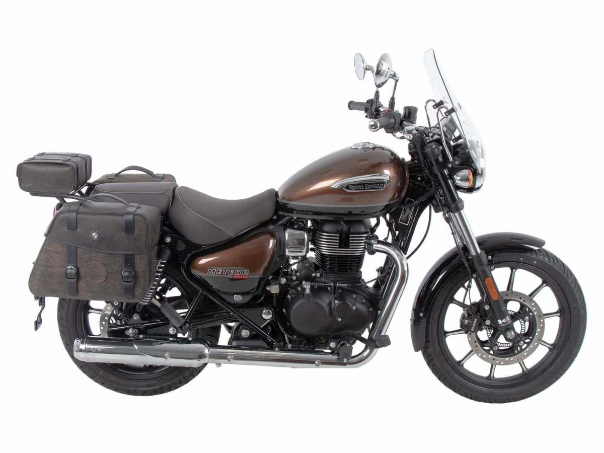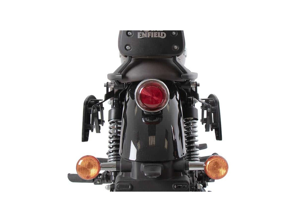 Sakwy boczne C-Bow do Royal Enfield Meteor 350 (2021-). Uchwyt na torby C-Bow jest przeznaczony do różnych toreb Hepco&Becker, w zależności od modelu motocykla. Torby miękkie do sportowych, dynamicznych motocykli oraz sakwy do chopperów i cruiserów można przymocować do motocykla za pomocą uchwytu C-Bow. Jego elegancki, dyskretny design idealnie wpasowuje się w ogólną linię pojazdu. Naturalnie, utrzymuje sakwy z dala od rozgrzanego tłumika. Nowoczesna technologia C-Bow pozwala na proste i łatwe przymocowanie odpowiednich toreb do C-Bow jednym kliknięciem, co zapewnia ich solidne zablokowanie, co zniechęca do kradzieży. Torby są bezpiecznie przymocowane do motocykla i pozostają na swoim miejscu nawet po załadowaniu. W wielu modelach kierunkowskazy pozostają w swojej pierwotnej pozycji. Więcej informacji można znaleźć w instrukcji obsługi. Specjalny bagażnik tylko do toreb i kufrów Hepco&Becker C-Bow Standardowy twardy bagaż Hepco&Becker nie pasuje do toreb Krauser K-Wing Wysokiej jakości wykończenie powierzchni Dostawa: prawa strona, lewa strona, zestaw montażowy, instrukcja Łatwy montaż Zwykle można łączyć z bagażnikami na kufry górne, sissybar lub bagażnikami solo (sprawdź instrukcję i informacje dotyczące konkretnego modelu motocykla) Powiększenie tylnego bagażnika może ograniczyć funkcjonalność toreb Zaprojektowane dla fabrycznego stanu maszyny. Nie testowano z akcesoriami takimi jak wydech, uchwyt tablicy rejestracyjnej lub inne kierunkowskazy. Używając akcesoriów innych firm, upewnij się, że torby są zawsze trzymane w odpowiedniej odległości od wydechu i że kierunkowskazy mają odpowiedni kąt wiązki. Strumień spalin nie może być skierowany na torby.