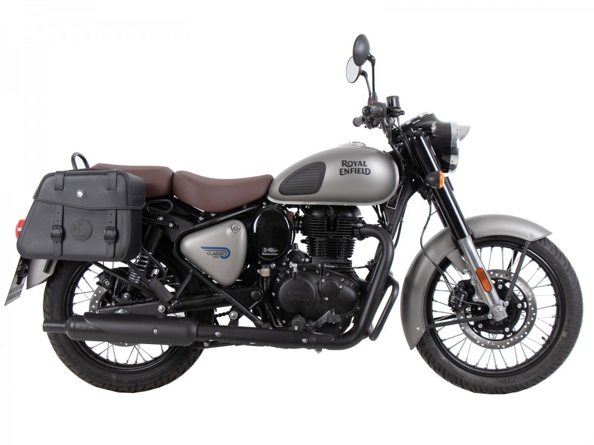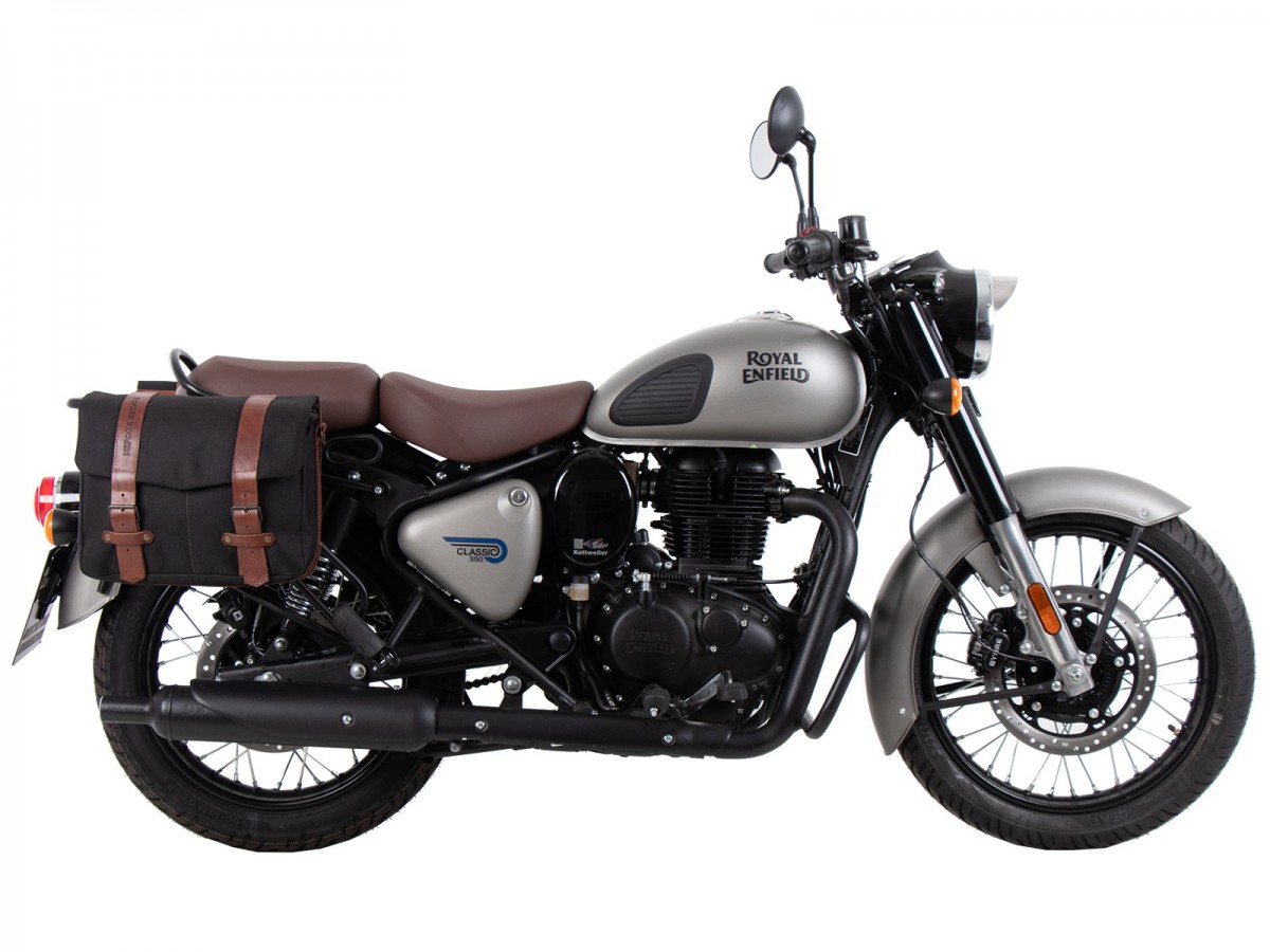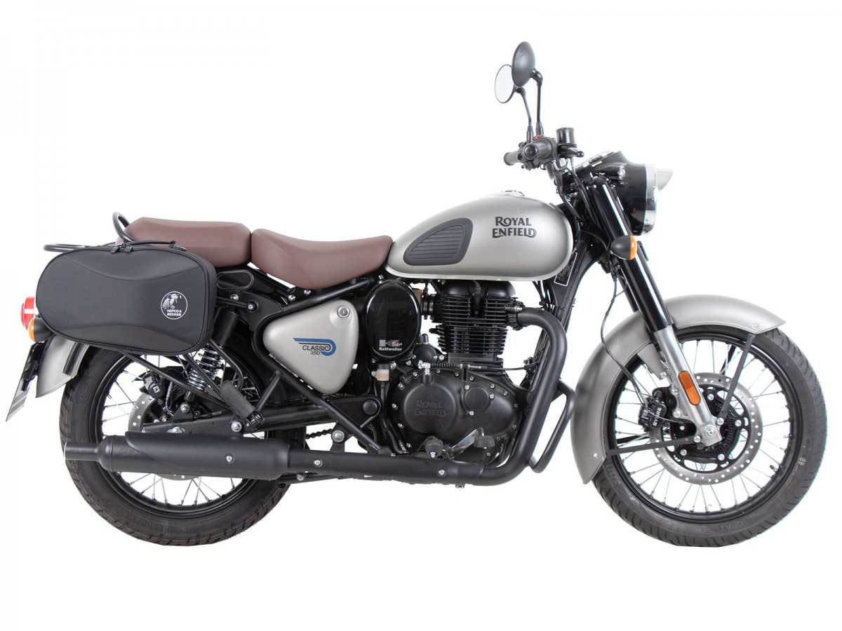 Sakwy boczne C-Bow do Royal Enfield Classic 350 (2022-). Uchwyt na kufry C-Bow jest przeznaczony do różnych kufrów Hepco&Becker, w zależności od modelu motocykla. Za pomocą uchwytu C-Bow można przymocować miękkie sakwy do sportowych, dynamicznych motocykli oraz sakwy do chopperów i cruiserów. Elegancki, dyskretny design idealnie wpasowuje się w ogólną linię pojazdu. Naturalnie, utrzymuje sakwy z dala od rozgrzanego tłumika. Nowoczesna technologia C-Bow pozwala na proste i łatwe przymocowanie odpowiednich kufrów do C-Bow jednym kliknięciem, co skutecznie blokuje je, uniemożliwiając kradzież. Sakwy są bezpiecznie przymocowane do motocykla i pozostają na swoim miejscu nawet po załadowaniu. W wielu modelach kierunkowskazy pozostają w swojej pierwotnej pozycji. Więcej informacji można znaleźć w instrukcji obsługi. Specjalny bagażnik tylko do toreb i kufrów Hepco&Becker C-Bow Standardowy twardy bagaż Hepco&Becker nie pasuje do toreb Krauser K-Wing Wysokiej jakości wykończenie powierzchni Dostawa: prawa strona, lewa strona, zestaw montażowy, instrukcja Łatwy montaż Zwykle można łączyć z bagażnikami na kufry górne, sissybar lub bagażnikami solo (sprawdź instrukcję i informacje dotyczące konkretnego modelu motocykla) Powiększenie tylnego bagażnika może ograniczyć funkcjonalność toreb Zaprojektowane dla fabrycznego stanu maszyny. Nie testowano z akcesoriami takimi jak wydech, uchwyt tablicy rejestracyjnej lub inne kierunkowskazy. Używając akcesoriów innych firm, upewnij się, że torby są zawsze trzymane w odpowiedniej odległości od wydechu i że kierunkowskazy mają odpowiedni kąt wiązki. Strumień spalin nie może być skierowany na torby.