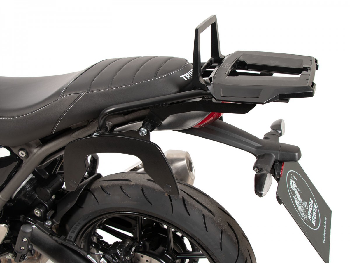 Uchwyt na kufry C-Bow jest przeznaczony do różnych kufrów Hepco&Becker, w zależności od modelu motocykla. Za pomocą uchwytu C-Bow można przymocować miękkie sakwy do sportowych, dynamicznych motocykli oraz sakwy do chopperów i cruiserów. Jego elegancki, dyskretny design idealnie wpasowuje się w ogólną linię pojazdu. Naturalnie, sakwy są bezpiecznie trzymane z dala od rozgrzanego tłumika. Nowoczesna technologia C-Bow pozwala na proste i łatwe przymocowanie odpowiednich kufrów do C-Bow jednym kliknięciem, co skutecznie je blokuje, uniemożliwiając kradzież. Kufry są bezpiecznie przymocowane do motocykla i pozostają na swoim miejscu nawet po załadowaniu. W wielu modelach kierunkowskazy pozostają w swojej pierwotnej pozycji. Proszę sprawdzić instrukcję, aby uzyskać więcej informacji. Specjalny bagażnik przeznaczony wyłącznie do toreb i pudeł Hepco&Becker C-Bow. Standardowy twardy bagażnik Hepco&Becker nie pasuje. Twardy bagażnik Krauser K-Wing nie pasuje. Łatwy montaż. Dostawa: prawa strona, lewa strona, zestaw montażowy, instrukcja. Zalecane obciążenie: 5 kg na torbę (więcej informacji można znaleźć w instrukcji lub u producenta motocykla). Można go łączyć głównie z bagażnikiem na kufer centralny, sissybar lub innym tylnym bagażnikiem (więcej informacji można znaleźć w instrukcji lub u producenta konkretnego modelu motocykla). Powiększenie tylnego bagażnika może ograniczyć funkcjonalność toreb.