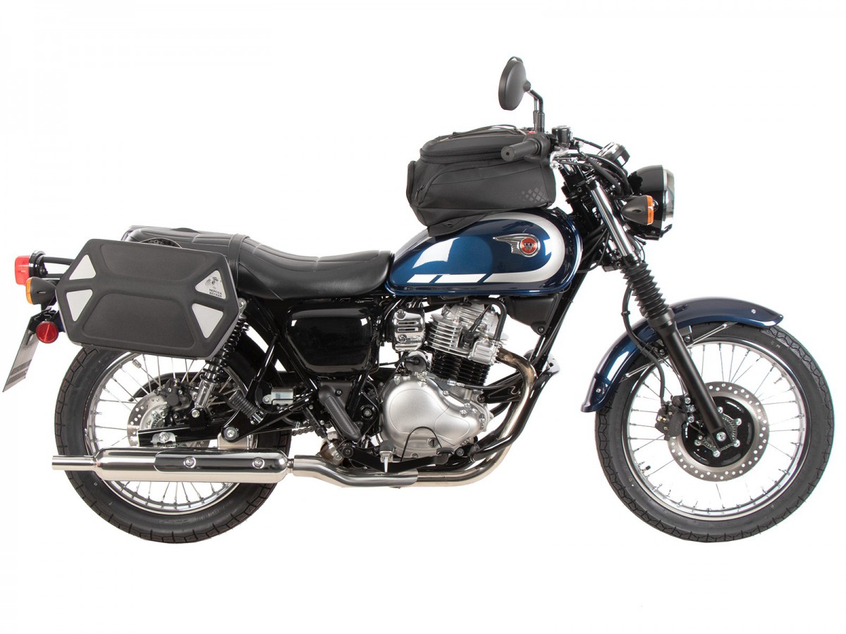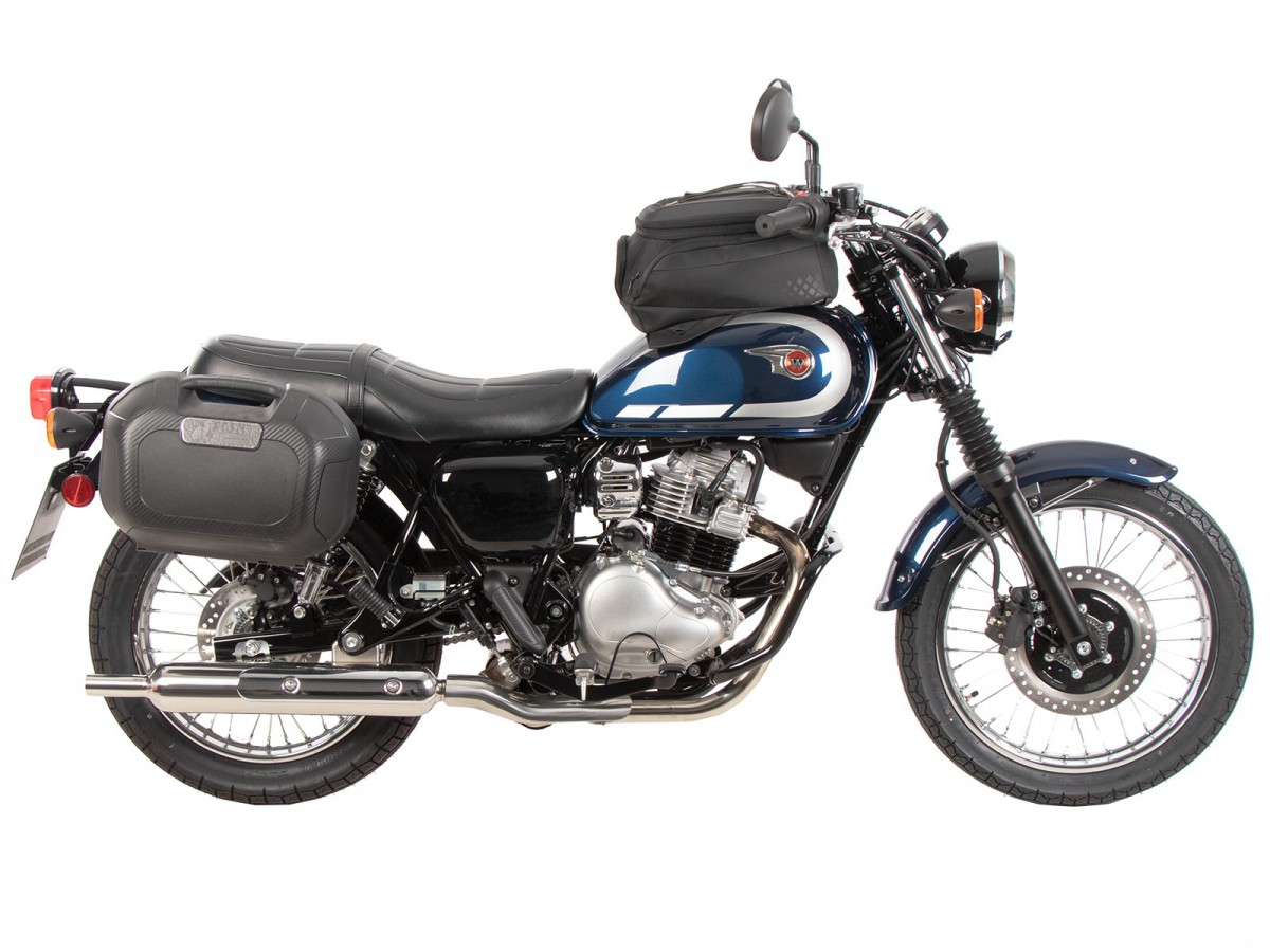 Stelaż boczny C-Bow do Kawasaki W230 / Meguro S1 (2025-). Uchwyt na kufry C-Bow jest przeznaczony do różnych kufrów Hepco&Becker, w zależności od modelu motocykla. Za pomocą uchwytu C-Bow można przymocować miękkie sakwy do sportowych, dynamicznych motocykli oraz sakwy do chopperów i cruiserów. Elegancki, dyskretny design idealnie wpasowuje się w ogólną linię pojazdu. Naturalnie, sakwy boczne bezpiecznie trzymają się z dala od rozgrzanego tłumika. Nowoczesna technologia C-Bow pozwala na proste i łatwe przymocowanie odpowiednich kufrów do C-Bow jednym kliknięciem, co skutecznie blokuje je, uniemożliwiając kradzież. Kufry są bezpiecznie przymocowane do motocykla i pozostają na swoim miejscu nawet po załadowaniu. W wielu modelach kierunkowskazy pozostają w swojej pierwotnej pozycji. Więcej informacji można znaleźć w instrukcji obsługi. Specjalny bagażnik tylko do toreb i kufrów Hepco&Becker C-Bow Standardowy twardy bagaż Hepco&Becker nie pasuje do toreb Krauser K-Wing Wysokiej jakości wykończenie powierzchni Dostawa: prawa strona, lewa strona, zestaw montażowy, instrukcja Łatwy montaż Zwykle można łączyć z bagażnikami na kufry górne, sissybar lub bagażnikami solo (sprawdź instrukcję i informacje dotyczące konkretnego modelu motocykla) Powiększenie tylnego bagażnika może ograniczyć funkcjonalność toreb Zaprojektowane dla fabrycznego stanu maszyny. Nie testowano z akcesoriami takimi jak wydech, uchwyt tablicy rejestracyjnej lub inne kierunkowskazy. Używając akcesoriów innych firm, upewnij się, że torby są zawsze trzymane w odpowiedniej odległości od wydechu i że kierunkowskazy mają odpowiedni kąt wiązki. Strumień spalin nie może być skierowany na torby.