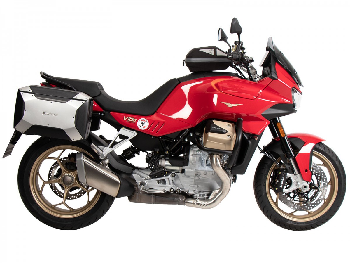 Stelaż boczny C-Bow do Moto Guzzi V100 Mandello / S (2022-). Uchwyt na torby C-Bow jest przeznaczony do różnych toreb Hepco&Becker, w zależności od modelu motocykla. Torby miękkie do sportowych, dynamicznych motocykli oraz sakwy do chopperów i cruiserów można przymocować do motocykla za pomocą uchwytu C-Bow. Jego elegancki, dyskretny design idealnie wpasowuje się w ogólną linię pojazdu. Naturalnie, utrzymuje sakwy z dala od rozgrzanego tłumika. Nowoczesna technologia C-Bow pozwala na proste i łatwe przymocowanie odpowiednich toreb do C-Bow jednym kliknięciem, co zapewnia ich solidne zablokowanie, co zniechęca do kradzieży. Torby są bezpiecznie przymocowane do motocykla i pozostają na swoim miejscu nawet po załadowaniu. W wielu modelach kierunkowskazy pozostają w swojej pierwotnej pozycji. Więcej informacji można znaleźć w instrukcji obsługi. Specjalny bagażnik tylko do toreb i kufrów Hepco&Becker C-Bow Standardowy twardy bagaż Hepco&Becker nie pasuje do toreb Krauser K-Wing Wysokiej jakości wykończenie powierzchni Dostawa: prawa strona, lewa strona, zestaw montażowy, instrukcja Łatwy montaż Zwykle można łączyć z bagażnikami na kufry górne, sissybar lub bagażnikami solo (sprawdź instrukcję i informacje dotyczące konkretnego modelu motocykla) Powiększenie tylnego bagażnika może ograniczyć funkcjonalność toreb Zaprojektowane dla fabrycznego stanu maszyny. Nie testowano z akcesoriami takimi jak wydech, uchwyt tablicy rejestracyjnej lub inne kierunkowskazy. Używając akcesoriów innych firm, upewnij się, że torby są zawsze trzymane w odpowiedniej odległości od wydechu i że kierunkowskazy mają odpowiedni kąt wiązki. Strumień spalin nie może być skierowany na torby.