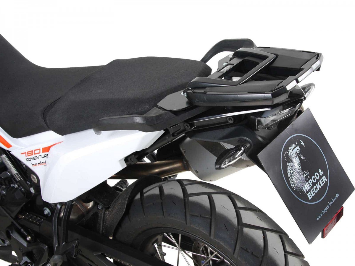 Stelaż kufra centralnego Easyrack w kolorze czarnym, do połączenia z oryginalnym bagażnikiem tylnym do KTM 890 Adventure / R / R
