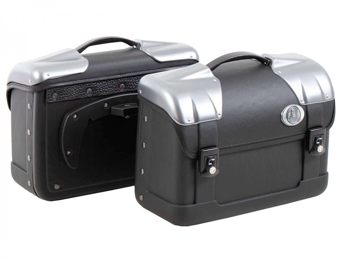 Klasyka najwyższej jakości! Te eleganckie torby retro nawiązują do skórzanych walizek minionych pokoleń. Kufry boczne Hepco&Becker Strayker nie są wykonane ze skóry, lecz z wysoce wytrzymałego, miękkiego w dotyku materiału o skórzanym wyglądzie, który doskonale zachowuje swój kształt. Dzięki kontrastowym narożnym aplikacjom z emaliowanego plastiku, stanowią prawdziwą ozdobę każdego roadstera i realną alternatywę dla twardych kufrów. Po zejściu z motocykla doskonale sprawdzi się również jako codzienna aktówka. Pomieści mnóstwo teczek A4 lub laptopa. Pasuje do bagażnika bocznego C-Bow w modelu Hepco&Becker, w zestawie uchwyt na ladę, klucze i zamki. Torby zamykane na klucz. Wewnętrzna torba i pokrowiec przeciwdeszczowy jako zalecane akcesorium. Zalecane obciążenie: 5-7 kg na torbę (prosimy o sprawdzenie informacji o ograniczeniach dotyczących konkretnego modelu bagażnika).