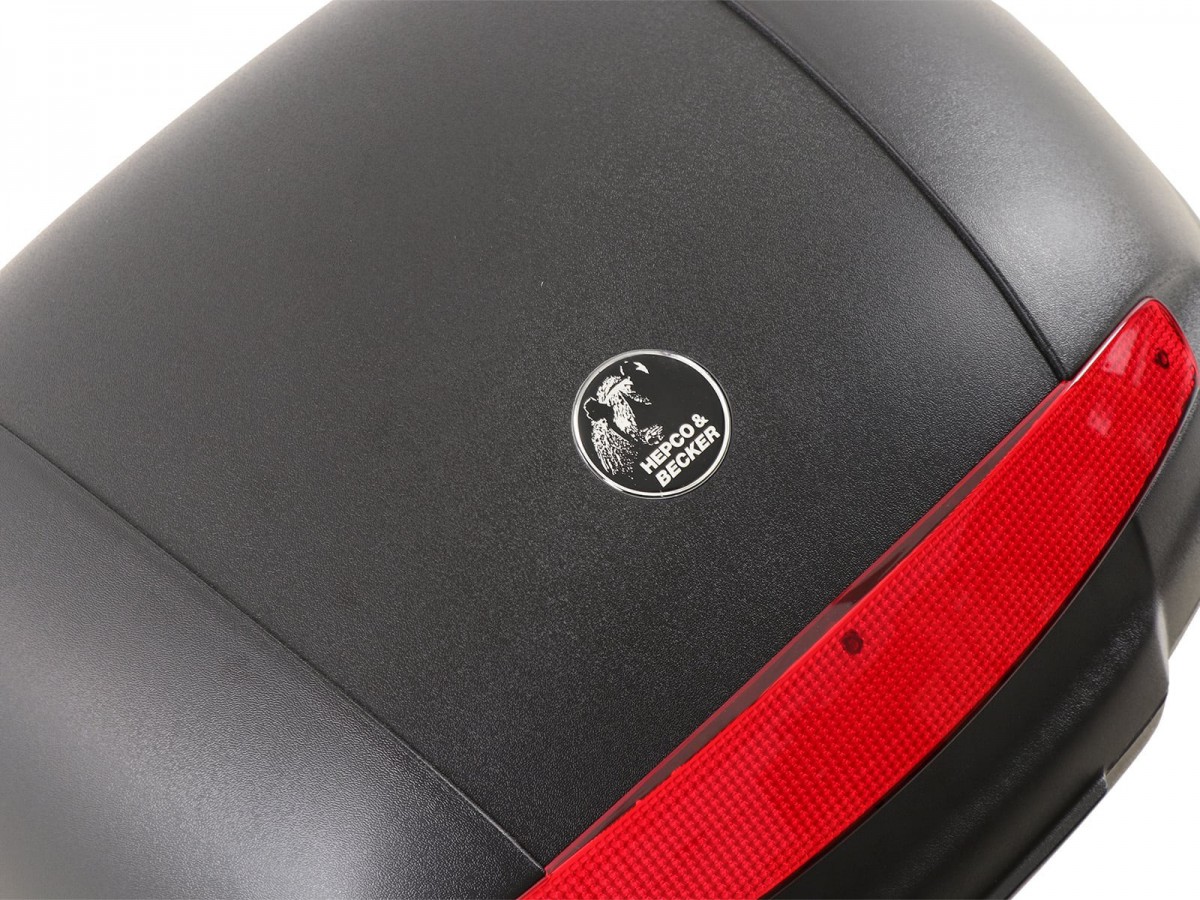 Kufer centralny Hepco&Becker Journey 50: czarny z czerwonym odblaskiem. mieści dwa kaski, jest wodoodporny dzięki specjalnemu uszczelnieniu, skorupa kufra wykonana z bardzo odpornego na uderzenia tworzywa sztucznego, pasuje do bagażników H&B Aluracks, Easyracks i Tube, zalecane obciążenie: 5 kg do kufra centralnego (sprawdź informacje dotyczące konkretnego modelu bagażnika w celu uzyskania informacji o ograniczeniach), dostępne oparcie, reling i torba wewnętrzna