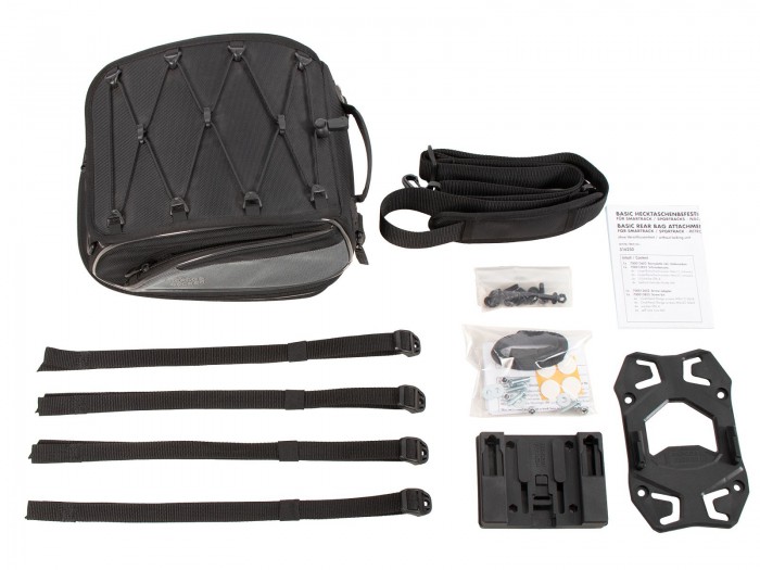 Torba tylna z podstawowym zestawem montażowym do montażu na naszym bagażniku Sportrack lub Smartrack. Zawartość opakowania: 1x torba tylna, 1x podstawowy zestaw montażowy, 4-częściowy zestaw pasków do montażu na ramie roweru, zintegrowana osłona przeciwdeszczowa, 100% poliester (powłoka hydrofobowa) i polietylen, wzmocnione ścianki boczne dla zachowania kształtu, stabilna dolna skorupa z pianki EVA, dwukierunkowy zamek błyskawiczny z możliwością zamknięcia na małą kłódkę, uchwyt, elastyczna siatka bagażowa na pokrywie, pasek na ramię, zamek błyskawiczny dookoła w celu zwiększenia objętości.