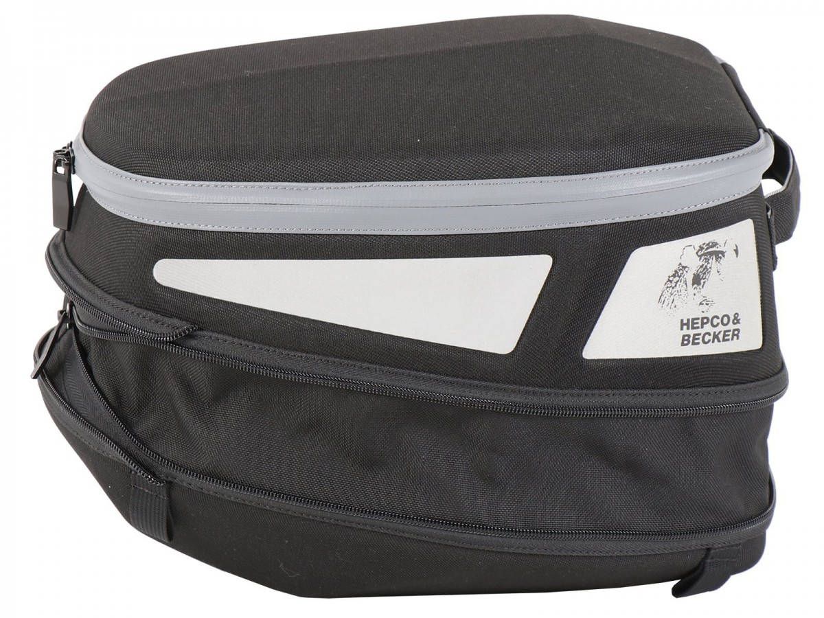 Torba tylna Royster Sport Basic Rearbag oferuje dwa rodzaje mocowania: z mocowaniem Basic torbę można błyskawicznie zamontować na bagażniku Sportrack lub Smartrack danego modelu lub konwencjonalnie, za pomocą niezawodnego 4-punktowego pasa mocującego na siedzeniu pasażera. Dzięki dwóm wersjom torba tylna jest idealnym rozwiązaniem bagażowym dla wielu motocykli sportowych. Zarówno na krótkich, jak i długich trasach, torba tylna Royster Sport oferuje dużo miejsca, uzupełniając torbę boczną Royster i torbę na zbiornik paliwa. W zestawie: zestaw montażowy Basic do montażu na bagażnikach Sportrack lub Smartrack firmy Hepco&Becker. W zestawie: pasujące paski mocujące. W zestawie: wodoodporna torba wewnętrzna z zamkiem błyskawicznym. Łatwe odpinanie dzięki mechanizmowi blokującemu Basic. Zalecane obciążenie: 5 kg (Należy zapoznać się z informacjami dotyczącymi danego modelu bagażnika oraz informacjami producenta motocykla).