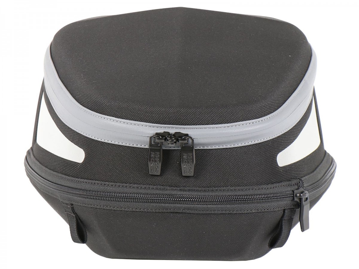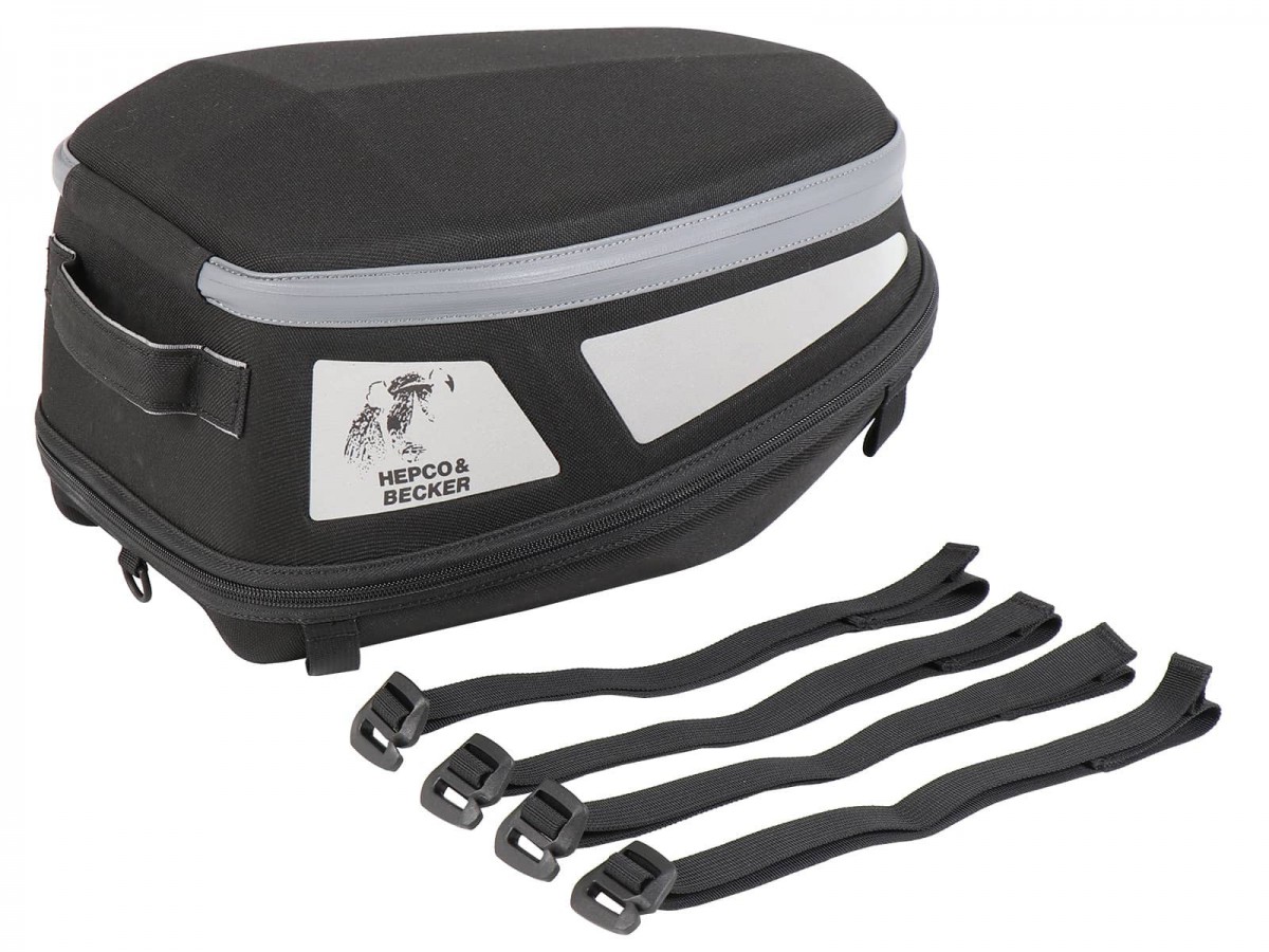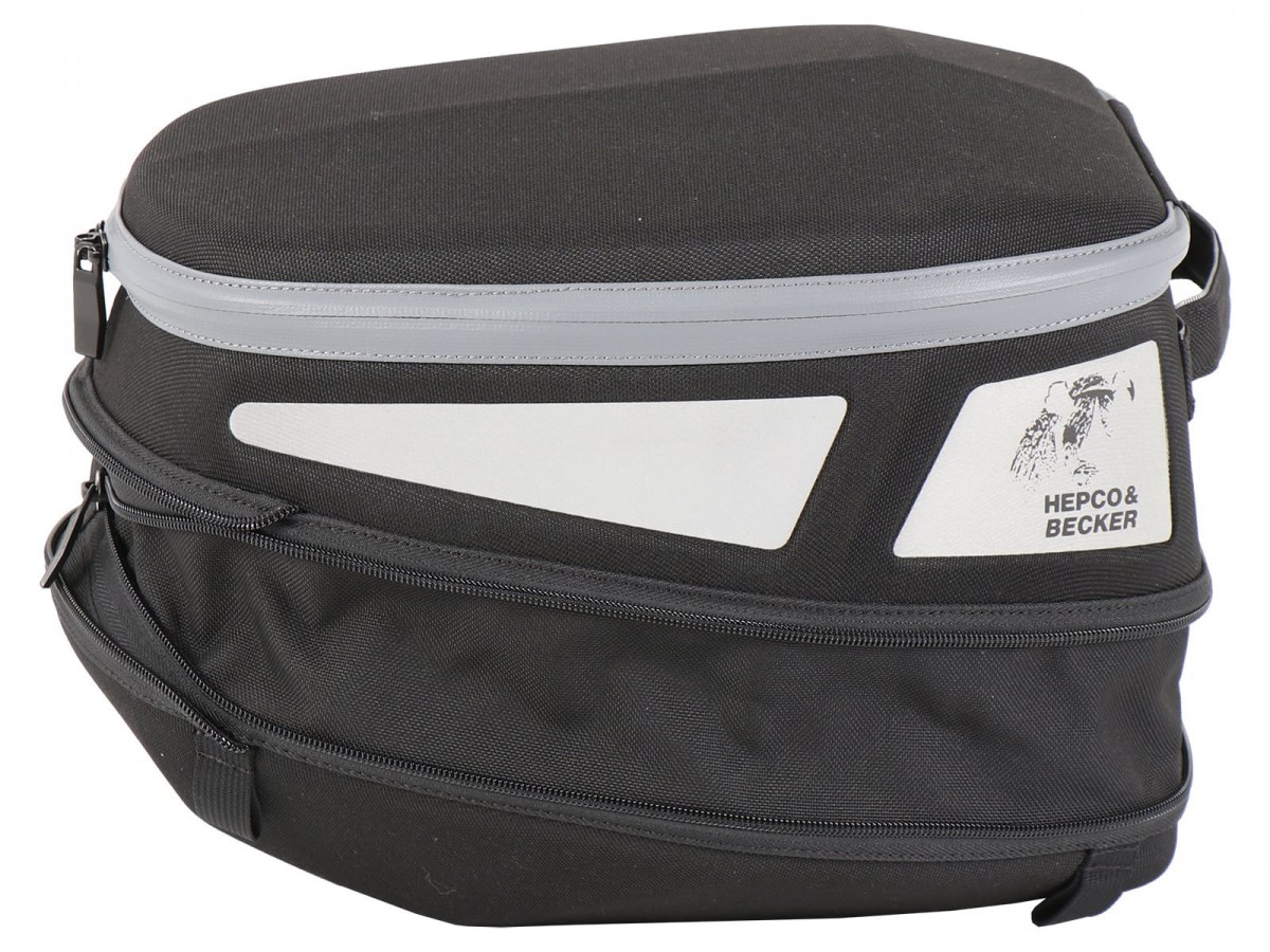Torba tylna Hepco&Becker Royster Sport jest standardowo mocowana do siedzenia pasażera za pomocą niezawodnego, 4-punktowego paska mocującego. Dzięki dwóm wersjom torba tylna stanowi idealne rozwiązanie bagażowe dla wielu motocykli sportowych. Zarówno na krótkich, jak i długich trasach, torba tylna Royster oferuje mnóstwo miejsca, uzupełniając torbę boczną i torbę na zbiornik paliwa. W zestawie pasujące paski do mocowania z tyłu motocykla, na elementach ramy lub podnóżkach. Wodoodporna torba wewnętrzna. Zamek błyskawiczny. Zalecane obciążenie: 5 kg (należy zapoznać się z informacjami dotyczącymi danego modelu bagażnika oraz informacjami producenta motocykla). Uwaga: dostępna również w wersji podstawowej, do montażu na bagażnikach sportowych lub mini bagażnikach.