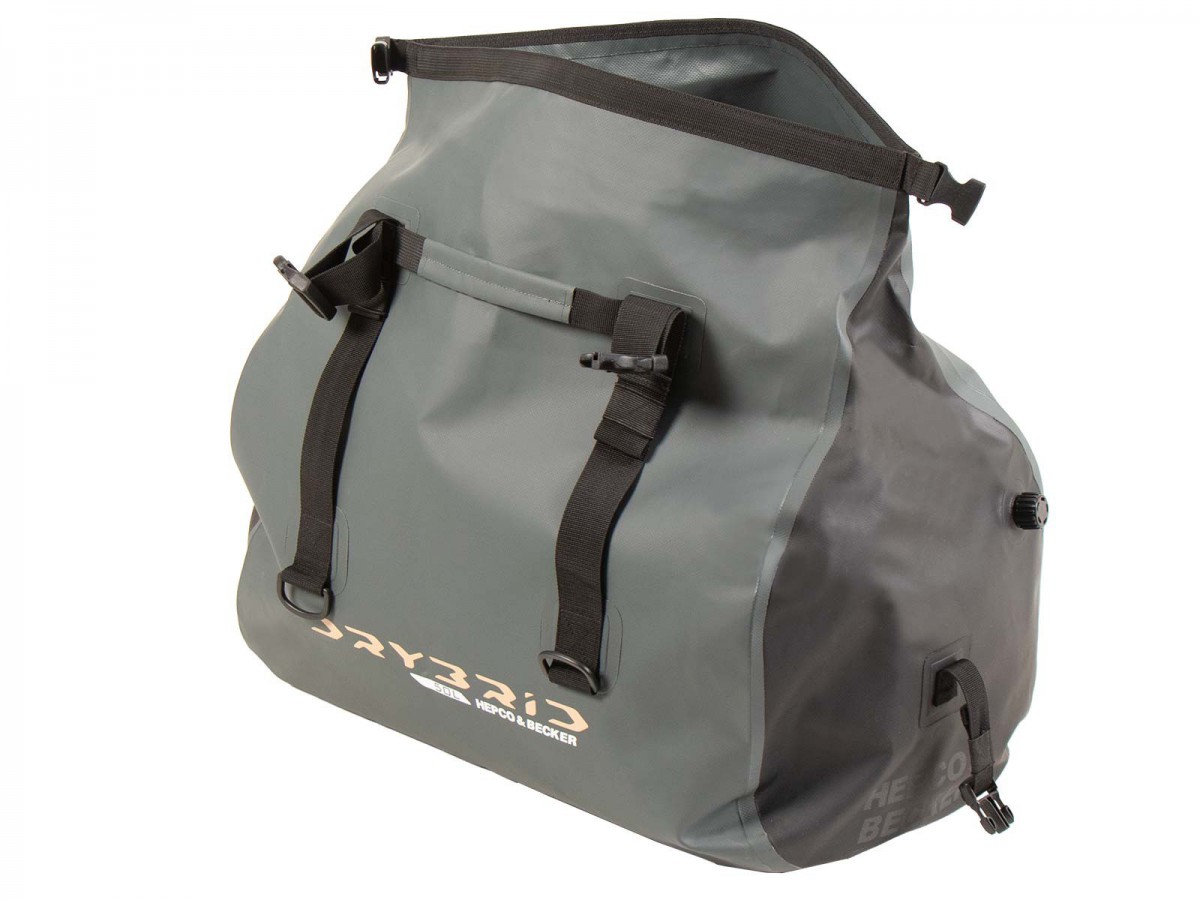 Nasza nowość do indywidualnego projektowania: torba Drybrid Cechy torby Drybrid: Szeroki otwór z zamknięciem typu roll-top i plastikowymi klipsami po bokach Dwa obwodowe paski kompresyjne Wodoodporny Nadaje się do wielu motocykli dzięki mocowaniu za pomocą 4 pasów pętelkowych Możliwość montażu na siedzeniu pasażera i poszerzenia Odporny na promieniowanie UV Łatwy do czyszczenia Łatwy do skompresowania dzięki bocznemu zaworowi powietrza Z praktycznym uchwytem do przenoszenia Pasek na ramię dostępny opcjonalnie Szczegóły torby Drybrid Materiał: poliester powlekany PVC Kolor: szaro-czarny / odblaskowy Wymiary zewnętrzne: 32 x 32 x 52 cm Waga: 1,0 kg Pojemność opakowania: 50 litrów Zawiera paski pętelkowe do uniwersalnego zastosowania Mocowanie w 4 punktach