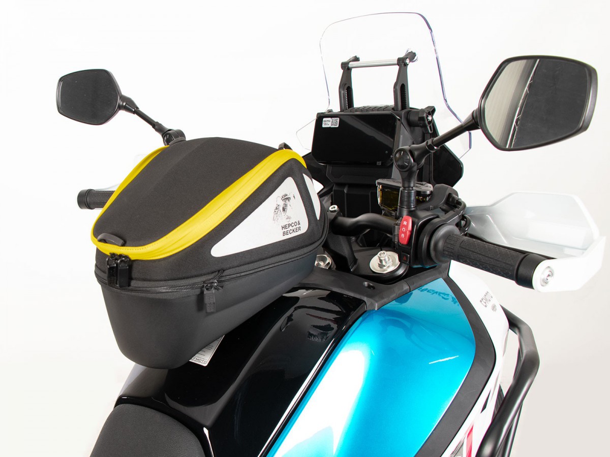 Prosty i innowacyjny w tym samym czasie - pierścień zbiornika BASIC Ten funkcjonalny pierścień zbiornika umożliwia zamocowanie torby na zbiornik firmy Hepco&Becker. Zakres dostawy obejmuje pierścień zbiornika BASIC, a także mocowanie torby na zbiornik, które można indywidualnie przykręcić do torby na zbiornik, w zależności od kształtu zbiornika i kąta kierownicy. Korek zbiornika można nadal otworzyć przy zamontowanym pierścieniu zbiornika bez żadnych problemów. Ogólnie rzecz biorąc, wszystko czego potrzebujesz to ten pierścień zbiornika i torba na zbiornik firmy H&B i masz wszystko, czego potrzebujesz. Każdy pierścień zbiornika specyficzny dla danego modelu jest przechowywany w bazie danych „Mój rower” dla odpowiedniego modelu motocykla. Jeśli pierścień zbiornika nie jest zapisany, możesz również skorzystać z listy kontrolnej tutaj w sklepie, aby ręcznie dowiedzieć się, czy uniwersalny pierścień zbiornika jest dostępny dla żądanego modelu. (Zobacz menu główne -> pierścienie na zbiornik BASIC)Charakterystyka:absolutnie bezpieczne trzymanie, nawet przy dużych prędkościachblokowanie mechanicznełatwa obsługatorbę na zbiornik Hepco&Becker wystarczy założyć i blokuje się ona słyszalnie na pierścieniu na zbiorniku dzięki wyrafinowanemu mechanizmowiodblokowywanie: mechanizm odblokowuje się za pomocą paska mocującego w kierunku jazdy z przodu torby na zbiornik; torba na zbiornik jest po prostu zdejmowanaprosta, ale skuteczna mechanikazalecana maksymalna prędkość z zamontowaną torbą na zbiornik: 130 km/h (proszę zwrócić uwagę na informacje producenta motocykla, a także informacje dotyczące konkretnego modelu w instrukcji lub tutaj z produktemzalecane obciążenie torby na zbiornik: ok. 3 kgW Niemczech systemy toreb na zbiornik nie wymagają ABE ani wpisu w dokumentach.Różnica między pierścieniami na zbiornik Lock-it i BASIC:Ogólna funkcja i działanie pozostają takie same. Jednak w porównaniu z pierścieniem na zbiornik Lock-it, pierścień na zbiornik Basic blokuje się tylko mechanicznie. Magnesy pierścienia na zbiornik Lock-it pomagają w centrowaniu. Różnica polega wyłącznie na dwóch magnesach lub plastikowych kopułkach, które są przykręcone do pierścienia na zbiornik. Rzeczywisty, specyficzny dla danego modelu „pierścień metalowy” jest taki sam dla obu wersji.Uwaga:Torby na zbiornik z uchwytem Lock-it nie można umieścić na pierścieniu na zbiornik BASIC i odwrotnie. Uchwyt torby na zbiornik i pierścień na zbiornik muszą pochodzić z tego samego systemu.