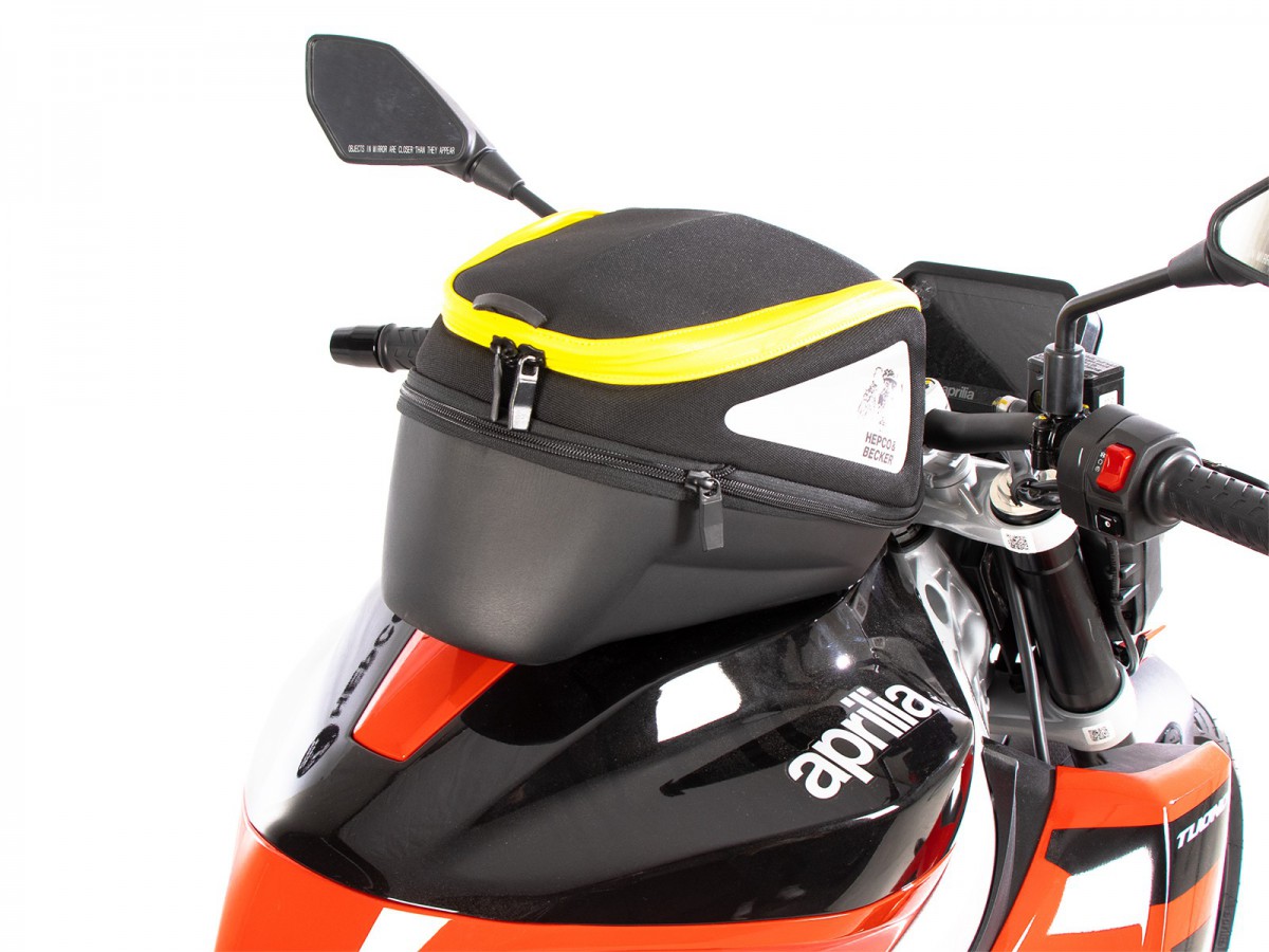 Prosty i innowacyjny w tym samym czasie - pierścień zbiornika BASIC Ten funkcjonalny pierścień zbiornika umożliwia zamocowanie torby na zbiornik firmy Hepco&Becker. Zakres dostawy obejmuje pierścień zbiornika BASIC, a także mocowanie torby na zbiornik, które można indywidualnie przykręcić do torby na zbiornik, w zależności od kształtu zbiornika i kąta kierownicy. Korek zbiornika można nadal otworzyć przy zamontowanym pierścieniu zbiornika bez żadnych problemów. Ogólnie rzecz biorąc, wszystko czego potrzebujesz to ten pierścień zbiornika i torba na zbiornik firmy H&B i masz wszystko, czego potrzebujesz. Każdy pierścień zbiornika specyficzny dla danego modelu jest przechowywany w bazie danych „Mój rower” dla odpowiedniego modelu motocykla. Jeśli pierścień zbiornika nie jest zapisany, możesz również skorzystać z listy kontrolnej tutaj w sklepie, aby ręcznie dowiedzieć się, czy uniwersalny pierścień zbiornika jest dostępny dla żądanego modelu. (Zobacz menu główne -> pierścienie na zbiornik BASIC)Charakterystyka:absolutnie bezpieczne trzymanie, nawet przy dużych prędkościachblokowanie mechanicznełatwa obsługatorbę na zbiornik Hepco&Becker wystarczy założyć i blokuje się ona słyszalnie na pierścieniu na zbiorniku dzięki wyrafinowanemu mechanizmowiodblokowywanie: mechanizm odblokowuje się za pomocą paska mocującego w kierunku jazdy z przodu torby na zbiornik; torba na zbiornik jest po prostu zdejmowanaprosta, ale skuteczna mechanikazalecana maksymalna prędkość z zamontowaną torbą na zbiornik: 130 km/h (proszę zwrócić uwagę na informacje producenta motocykla, a także informacje dotyczące konkretnego modelu w instrukcji lub tutaj z produktemzalecane obciążenie torby na zbiornik: ok. 3 kgW Niemczech systemy toreb na zbiornik nie wymagają ABE ani wpisu w dokumentach.Różnica między pierścieniami na zbiornik Lock-it i BASIC:Ogólna funkcja i działanie pozostają takie same. Jednak w porównaniu z pierścieniem na zbiornik Lock-it, pierścień na zbiornik Basic blokuje się tylko mechanicznie. Magnesy pierścienia na zbiornik Lock-it pomagają w centrowaniu. Różnica polega wyłącznie na dwóch magnesach lub plastikowych kopułkach, które są przykręcone do pierścienia na zbiornik. Rzeczywisty, specyficzny dla danego modelu „pierścień metalowy” jest taki sam dla obu wersji.Uwaga:Torby na zbiornik z uchwytem Lock-it nie można umieścić na pierścieniu na zbiornik BASIC i odwrotnie. Uchwyt torby na zbiornik i pierścień na zbiornik muszą pochodzić z tego samego systemu.