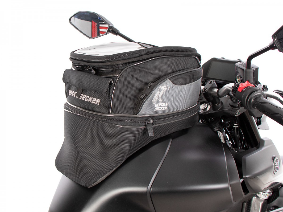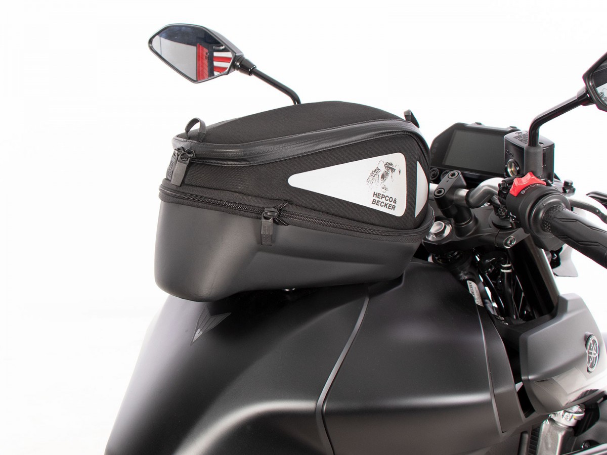 Prosty i innowacyjny w tym samym czasie - pierścień zbiornika BASIC Ten funkcjonalny pierścień zbiornika umożliwia zamocowanie torby na zbiornik firmy Hepco&Becker. Zakres dostawy obejmuje pierścień zbiornika BASIC, a także mocowanie torby na zbiornik, które można indywidualnie przykręcić do torby na zbiornik, w zależności od kształtu zbiornika i kąta kierownicy. Korek zbiornika można nadal otworzyć przy zamontowanym pierścieniu zbiornika bez żadnych problemów. Ogólnie rzecz biorąc, wszystko czego potrzebujesz to ten pierścień zbiornika i torba na zbiornik firmy H&B i masz wszystko, czego potrzebujesz. Każdy pierścień zbiornika specyficzny dla danego modelu jest przechowywany w bazie danych „Mój rower” dla odpowiedniego modelu motocykla. Jeśli pierścień zbiornika nie jest zapisany, możesz również skorzystać z listy kontrolnej tutaj w sklepie, aby ręcznie dowiedzieć się, czy uniwersalny pierścień zbiornika jest dostępny dla żądanego modelu. (Zobacz menu główne -> pierścienie na zbiornik BASIC)Charakterystyka:absolutnie bezpieczne trzymanie, nawet przy dużych prędkościachblokowanie mechanicznełatwa obsługatorbę na zbiornik Hepco&Becker wystarczy założyć i blokuje się ona słyszalnie na pierścieniu na zbiorniku dzięki wyrafinowanemu mechanizmowiodblokowywanie: mechanizm odblokowuje się za pomocą paska mocującego w kierunku jazdy z przodu torby na zbiornik; torba na zbiornik jest po prostu zdejmowanaprosta, ale skuteczna mechanikazalecana maksymalna prędkość z zamontowaną torbą na zbiornik: 130 km/h (proszę zwrócić uwagę na informacje producenta motocykla, a także informacje dotyczące konkretnego modelu w instrukcji lub tutaj z produktemzalecane obciążenie torby na zbiornik: ok. 3 kgW Niemczech systemy toreb na zbiornik nie wymagają ABE ani wpisu w dokumentach.Różnica między pierścieniami na zbiornik Lock-it i BASIC:Ogólna funkcja i działanie pozostają takie same. Jednak w porównaniu z pierścieniem na zbiornik Lock-it, pierścień na zbiornik Basic blokuje się tylko mechanicznie. Magnesy pierścienia na zbiornik Lock-it pomagają w centrowaniu. Różnica polega wyłącznie na dwóch magnesach lub plastikowych kopułkach, które są przykręcone do pierścienia na zbiornik. Rzeczywisty, specyficzny dla danego modelu „pierścień metalowy” jest taki sam dla obu wersji.Uwaga:Torby na zbiornik z uchwytem Lock-it nie można umieścić na pierścieniu na zbiornik BASIC i odwrotnie. Uchwyt torby na zbiornik i pierścień na zbiornik muszą pochodzić z tego samego systemu.