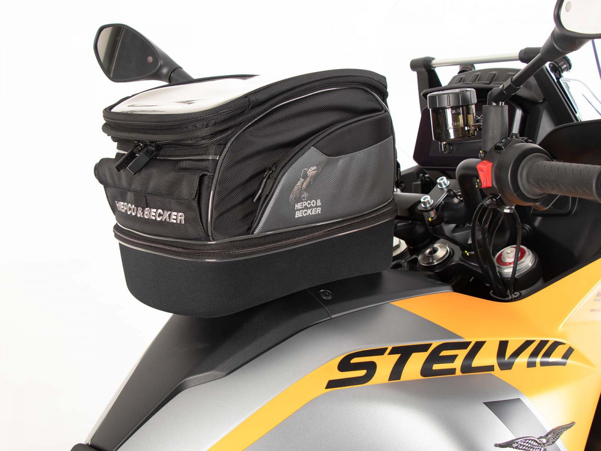 Prosty i innowacyjny w tym samym czasie - pierścień zbiornika BASIC Ten funkcjonalny pierścień zbiornika umożliwia zamocowanie torby na zbiornik firmy Hepco&Becker. Zakres dostawy obejmuje pierścień zbiornika BASIC, a także mocowanie torby na zbiornik, które można indywidualnie przykręcić do torby na zbiornik, w zależności od kształtu zbiornika i kąta kierownicy. Korek zbiornika można nadal otworzyć przy zamontowanym pierścieniu zbiornika bez żadnych problemów. Ogólnie rzecz biorąc, wszystko czego potrzebujesz to ten pierścień zbiornika i torba na zbiornik firmy H&B i masz wszystko, czego potrzebujesz. Każdy pierścień zbiornika specyficzny dla danego modelu jest przechowywany w bazie danych „Mój rower” dla odpowiedniego modelu motocykla. Jeśli pierścień zbiornika nie jest zapisany, możesz również skorzystać z listy kontrolnej tutaj w sklepie, aby ręcznie dowiedzieć się, czy uniwersalny pierścień zbiornika jest dostępny dla żądanego modelu. (Zobacz menu główne -> pierścienie na zbiornik BASIC)Charakterystyka:absolutnie bezpieczne trzymanie, nawet przy dużych prędkościachblokowanie mechanicznełatwa obsługatorbę na zbiornik Hepco&Becker wystarczy założyć i blokuje się ona słyszalnie na pierścieniu na zbiorniku dzięki wyrafinowanemu mechanizmowiodblokowywanie: mechanizm odblokowuje się za pomocą paska mocującego w kierunku jazdy z przodu torby na zbiornik; torba na zbiornik jest po prostu zdejmowanaprosta, ale skuteczna mechanikazalecana maksymalna prędkość z zamontowaną torbą na zbiornik: 130 km/h (proszę zwrócić uwagę na informacje producenta motocykla, a także informacje dotyczące konkretnego modelu w instrukcji lub tutaj z produktemzalecane obciążenie torby na zbiornik: ok. 3 kgW Niemczech systemy toreb na zbiornik nie wymagają ABE ani wpisu w dokumentach.Różnica między pierścieniami na zbiornik Lock-it i BASIC:Ogólna funkcja i działanie pozostają takie same. Jednak w porównaniu z pierścieniem na zbiornik Lock-it, pierścień na zbiornik Basic blokuje się tylko mechanicznie. Magnesy pierścienia na zbiornik Lock-it pomagają w centrowaniu. Różnica polega wyłącznie na dwóch magnesach lub plastikowych kopułkach, które są przykręcone do pierścienia na zbiornik. Rzeczywisty, specyficzny dla danego modelu „pierścień metalowy” jest taki sam dla obu wersji.Uwaga:Torby na zbiornik z uchwytem Lock-it nie można umieścić na pierścieniu na zbiornik BASIC i odwrotnie. Uchwyt torby na zbiornik i pierścień na zbiornik muszą pochodzić z tego samego systemu.