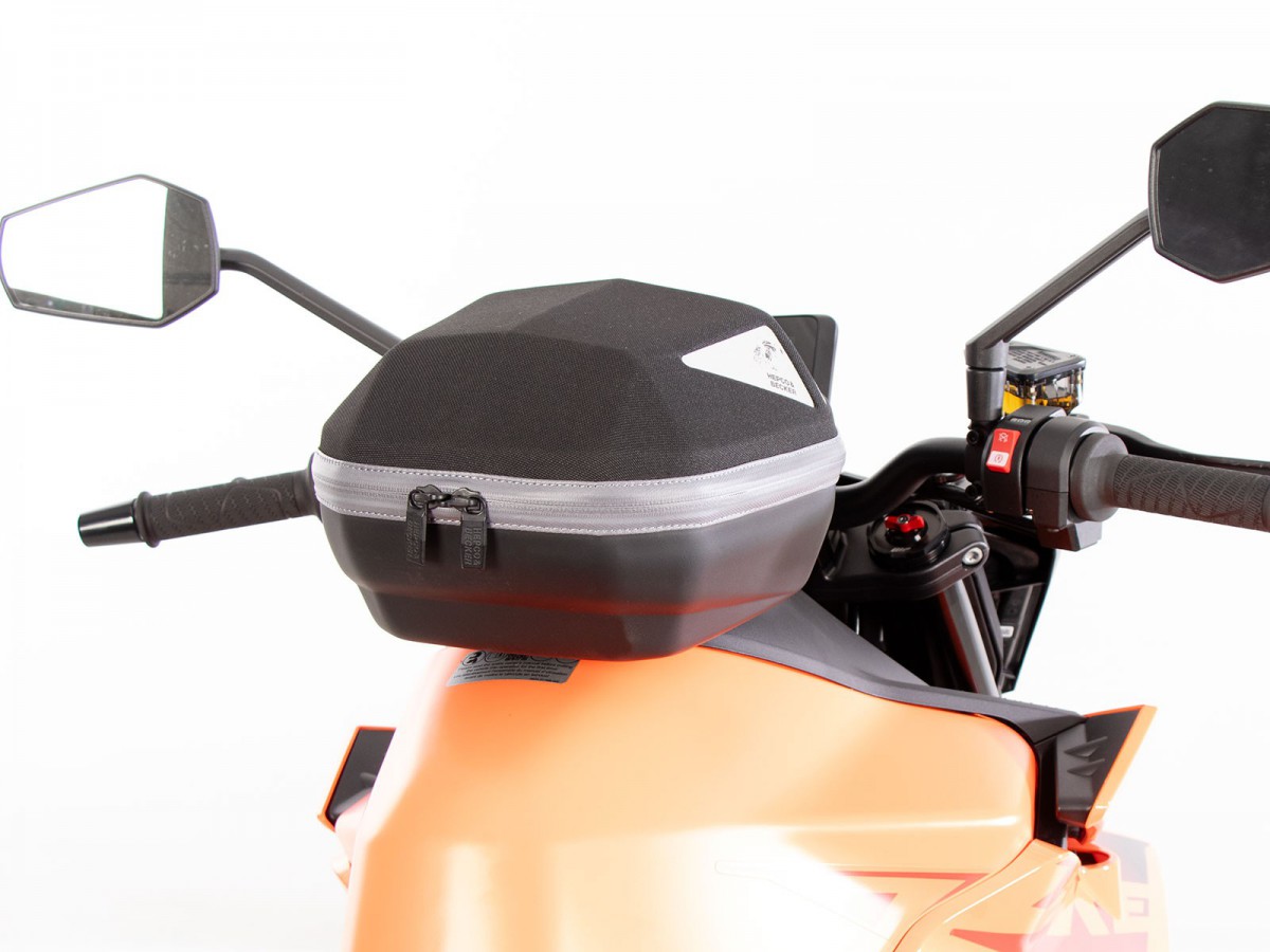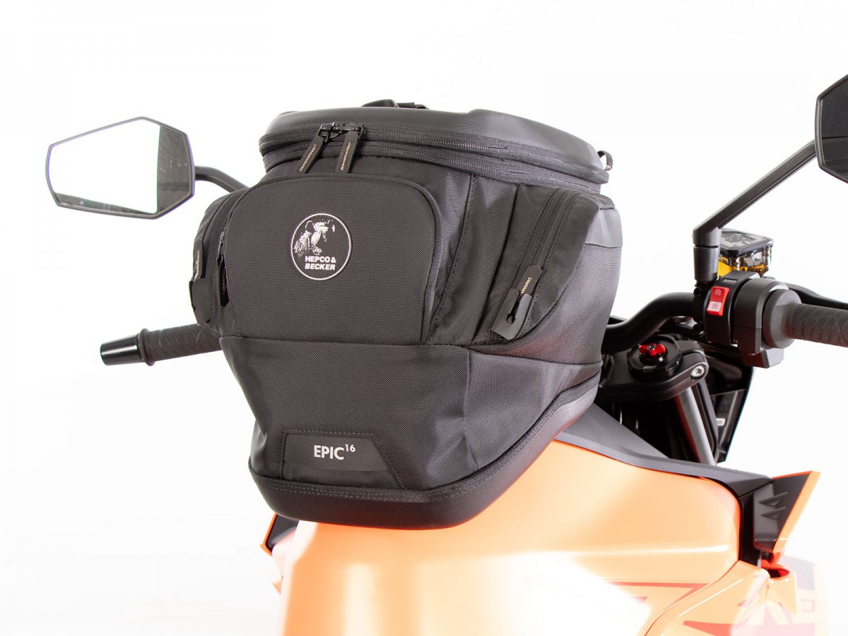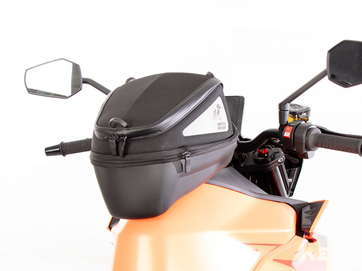 Prosty i innowacyjny w tym samym czasie - pierścień zbiornika BASIC Ten funkcjonalny pierścień zbiornika umożliwia zamocowanie torby na zbiornik firmy Hepco&Becker. Zakres dostawy obejmuje pierścień zbiornika BASIC, a także mocowanie torby na zbiornik, które można indywidualnie przykręcić do torby na zbiornik, w zależności od kształtu zbiornika i kąta kierownicy. Korek zbiornika można nadal otworzyć przy zamontowanym pierścieniu zbiornika bez żadnych problemów. Ogólnie rzecz biorąc, wszystko czego potrzebujesz to ten pierścień zbiornika i torba na zbiornik firmy H&B i masz wszystko, czego potrzebujesz. Każdy pierścień zbiornika specyficzny dla danego modelu jest przechowywany w bazie danych „Mój rower” dla odpowiedniego modelu motocykla. Jeśli pierścień zbiornika nie jest zapisany, możesz również skorzystać z listy kontrolnej tutaj w sklepie, aby ręcznie dowiedzieć się, czy uniwersalny pierścień zbiornika jest dostępny dla żądanego modelu. (Zobacz menu główne -> pierścienie na zbiornik BASIC)Charakterystyka:absolutnie bezpieczne trzymanie, nawet przy dużych prędkościachblokowanie mechanicznełatwa obsługatorbę na zbiornik Hepco&Becker wystarczy założyć i blokuje się ona słyszalnie na pierścieniu na zbiorniku dzięki wyrafinowanemu mechanizmowiodblokowywanie: mechanizm odblokowuje się za pomocą paska mocującego w kierunku jazdy z przodu torby na zbiornik; torba na zbiornik jest po prostu zdejmowanaprosta, ale skuteczna mechanikazalecana maksymalna prędkość z zamontowaną torbą na zbiornik: 130 km/h (proszę zwrócić uwagę na informacje producenta motocykla, a także informacje dotyczące konkretnego modelu w instrukcji lub tutaj z produktemzalecane obciążenie torby na zbiornik: ok. 3 kgW Niemczech systemy toreb na zbiornik nie wymagają ABE ani wpisu w dokumentach.Różnica między pierścieniami na zbiornik Lock-it i BASIC:Ogólna funkcja i działanie pozostają takie same. Jednak w porównaniu z pierścieniem na zbiornik Lock-it, pierścień na zbiornik Basic blokuje się tylko mechanicznie. Magnesy pierścienia na zbiornik Lock-it pomagają w centrowaniu. Różnica polega wyłącznie na dwóch magnesach lub plastikowych kopułkach, które są przykręcone do pierścienia na zbiornik. Rzeczywisty, specyficzny dla danego modelu „pierścień metalowy” jest taki sam dla obu wersji.Uwaga:Torby na zbiornik z uchwytem Lock-it nie można umieścić na pierścieniu na zbiornik BASIC i odwrotnie. Uchwyt torby na zbiornik i pierścień na zbiornik muszą pochodzić z tego samego systemu.