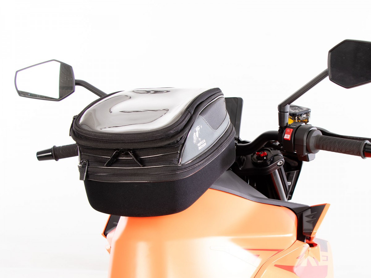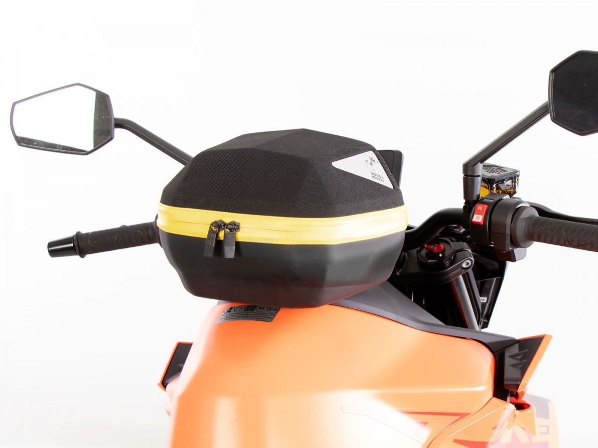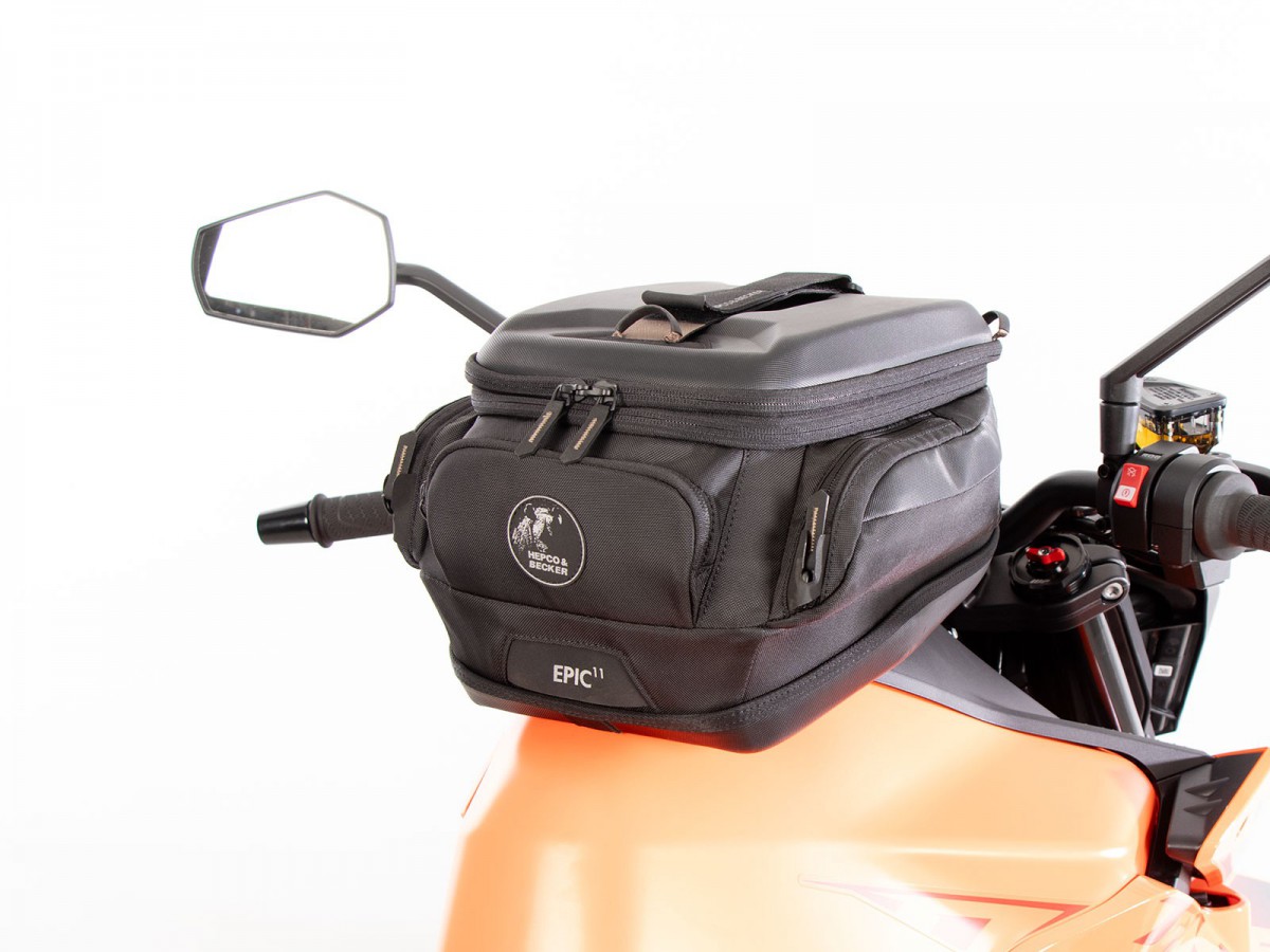 Prosty i innowacyjny w tym samym czasie - pierścień zbiornika BASIC Ten funkcjonalny pierścień zbiornika umożliwia zamocowanie torby na zbiornik firmy Hepco&Becker. Zakres dostawy obejmuje pierścień zbiornika BASIC, a także mocowanie torby na zbiornik, które można indywidualnie przykręcić do torby na zbiornik, w zależności od kształtu zbiornika i kąta kierownicy. Korek zbiornika można nadal otworzyć przy zamontowanym pierścieniu zbiornika bez żadnych problemów. Ogólnie rzecz biorąc, wszystko czego potrzebujesz to ten pierścień zbiornika i torba na zbiornik firmy H&B i masz wszystko, czego potrzebujesz. Każdy pierścień zbiornika specyficzny dla danego modelu jest przechowywany w bazie danych „Mój rower” dla odpowiedniego modelu motocykla. Jeśli pierścień zbiornika nie jest zapisany, możesz również skorzystać z listy kontrolnej tutaj w sklepie, aby ręcznie dowiedzieć się, czy uniwersalny pierścień zbiornika jest dostępny dla żądanego modelu. (Zobacz menu główne -> pierścienie na zbiornik BASIC)Charakterystyka:absolutnie bezpieczne trzymanie, nawet przy dużych prędkościachblokowanie mechanicznełatwa obsługatorbę na zbiornik Hepco&Becker wystarczy założyć i blokuje się ona słyszalnie na pierścieniu na zbiorniku dzięki wyrafinowanemu mechanizmowiodblokowywanie: mechanizm odblokowuje się za pomocą paska mocującego w kierunku jazdy z przodu torby na zbiornik; torba na zbiornik jest po prostu zdejmowanaprosta, ale skuteczna mechanikazalecana maksymalna prędkość z zamontowaną torbą na zbiornik: 130 km/h (proszę zwrócić uwagę na informacje producenta motocykla, a także informacje dotyczące konkretnego modelu w instrukcji lub tutaj z produktemzalecane obciążenie torby na zbiornik: ok. 3 kgW Niemczech systemy toreb na zbiornik nie wymagają ABE ani wpisu w dokumentach.Różnica między pierścieniami na zbiornik Lock-it i BASIC:Ogólna funkcja i działanie pozostają takie same. Jednak w porównaniu z pierścieniem na zbiornik Lock-it, pierścień na zbiornik Basic blokuje się tylko mechanicznie. Magnesy pierścienia na zbiornik Lock-it pomagają w centrowaniu. Różnica polega wyłącznie na dwóch magnesach lub plastikowych kopułkach, które są przykręcone do pierścienia na zbiornik. Rzeczywisty, specyficzny dla danego modelu „pierścień metalowy” jest taki sam dla obu wersji.Uwaga:Torby na zbiornik z uchwytem Lock-it nie można umieścić na pierścieniu na zbiornik BASIC i odwrotnie. Uchwyt torby na zbiornik i pierścień na zbiornik muszą pochodzić z tego samego systemu.