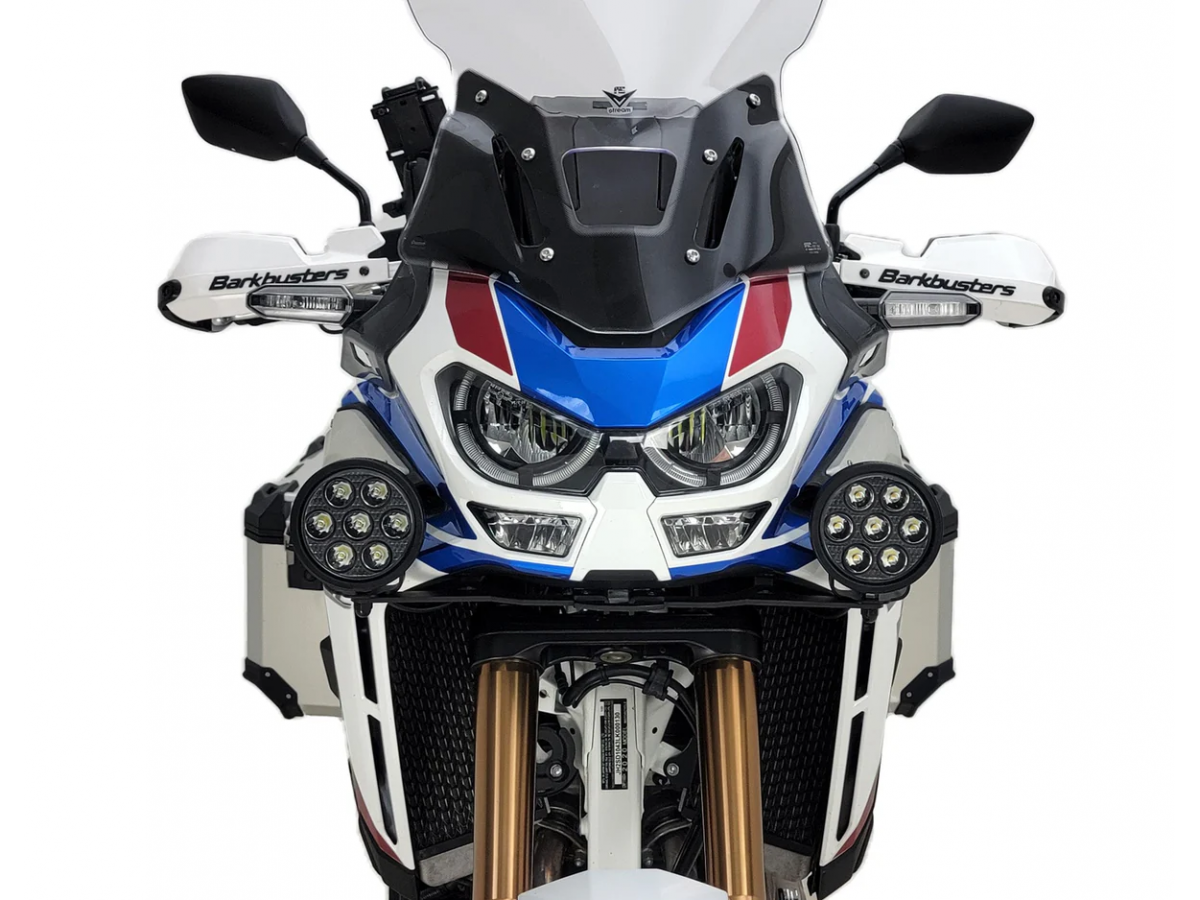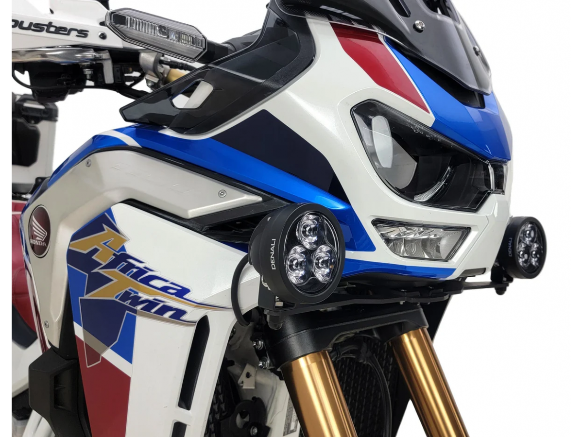Ten specyficzny dla pojazdu uchwyt na Å›wiatÅ‚a drogowe umożliwia zamontowanie dowolnego Å›wiatÅ‚a drogowego DENALI w optymalnym miejscu w modelu Africa Twin 1100 Adventure Sports, bezpoÅ›rednio pod i na zewnÄ…trz reflektora. Konstrukcja obejmuje wytrzymaÅ‚y stalowy wspornik, który można bezpiecznie zamontować na wsporniku owiewki Africa Twin 1100. Wspornik ma otwór montażowy M8 na moduÅ‚y Å›wietlne i zawiera wszystkie niezbÄ™dne elementy montażowe.Â
