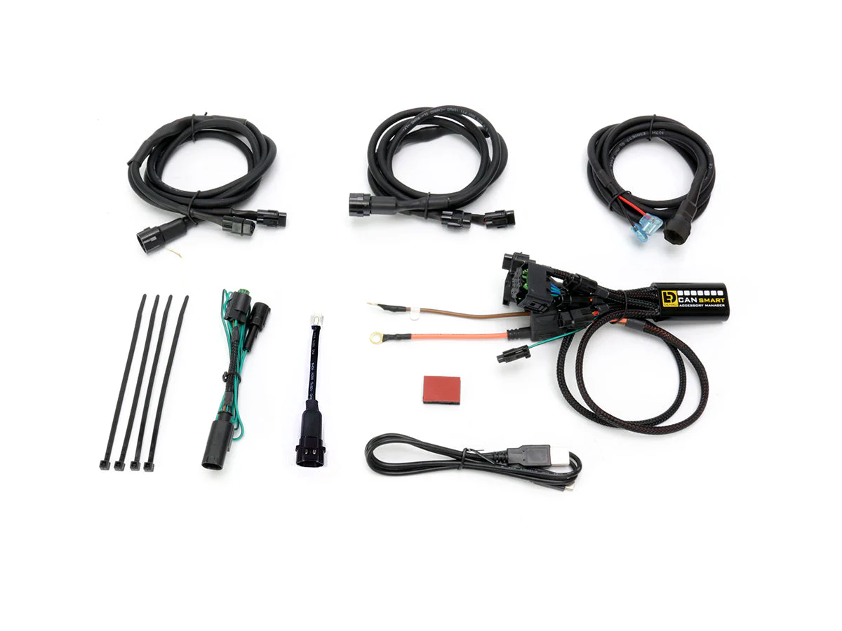 W przeciwieństwie do Gen I CANsmart, wszystkie cztery obwody Gen II mogą dostarczyć pełne 10 amperów ciągłej mocy, a każdy obwód można skonfigurować do obsługi dowolnego typu akcesorium. Maksymalne zużycie mocy całego urządzenia pozostaje na poziomie 30 amperów ciągłych. Gen II oferuje również dwa nowe ustawienia świateł pomocniczych. Teraz możesz modulować swoje światła pomocnicze dla zwiększenia widoczności oraz ustawić lewe i prawe światła boczne tak, aby niezależnie wyłączały się po włączeniu odpowiadającego kierunkowskazu.