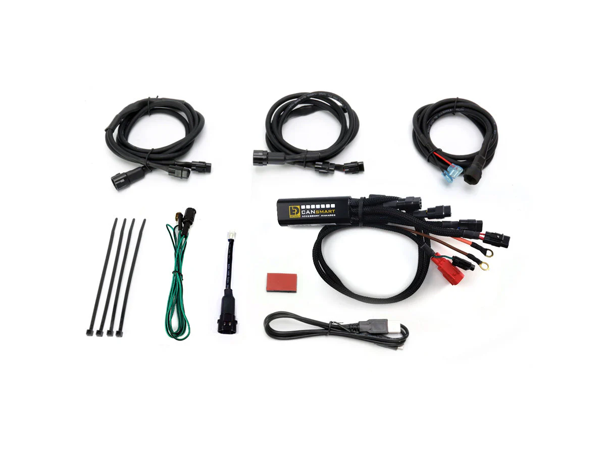 Kontroler DENALI CANsmart™ oferuje instalację typu plug-n-play oraz zintegrowaną kontrolę do czterech akcesoriów, umożliwiając dziesiątki konfigurowalnych ustawień, które można sterować bezpośrednio z przełączników Twojego KTM lub za pomocą oprogramowania CANsmart™ Accessory Manager.