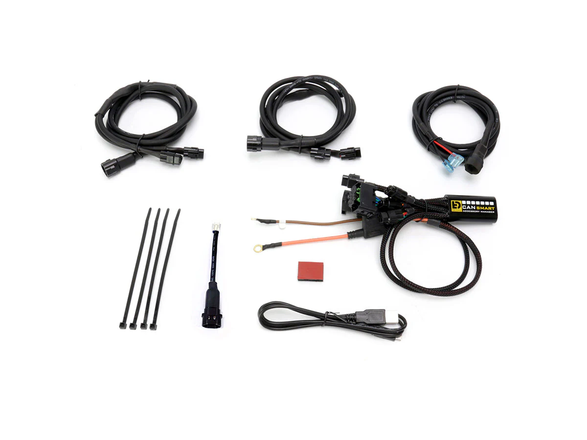 W przeciwieństwie do Gen I CANsmart, wszystkie cztery obwody Gen II mogą dostarczyć pełne 10 amperów ciągłej mocy, a każdy obwód można skonfigurować do obsługi dowolnego typu akcesorium. Maksymalne zużycie mocy całego urządzenia pozostaje na poziomie 30 amperów ciągłych. Gen II oferuje również dwa nowe ustawienia świateł pomocniczych. Teraz możesz modulować swoje światła pomocnicze dla zwiększenia widoczności oraz ustawić lewe i prawe światła boczne tak, aby niezależnie wyłączały się po włączeniu odpowiadającego kierunkowskazu.