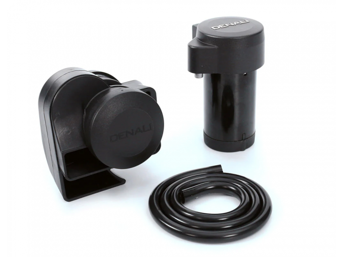 Unikalny dwuczęściowy design klaksonu DENALI split oddziela kompresor od jednostki akustycznej, co pozwala na zainstalowanie klaksonu w ciasnych przestrzeniach, takich jak za panelami nadwozia motocykla. 48-calowy wąż powietrzny odporny na wysokÄ… temperaturÄ™ łączy obie części, co pozwala na zamontowanie ich w zupeÅ‚nie innym miejscu na motocyklu bez utraty jakiejkolwiek wydajnoÅ›ci dźwiÄ™kowej. Â
