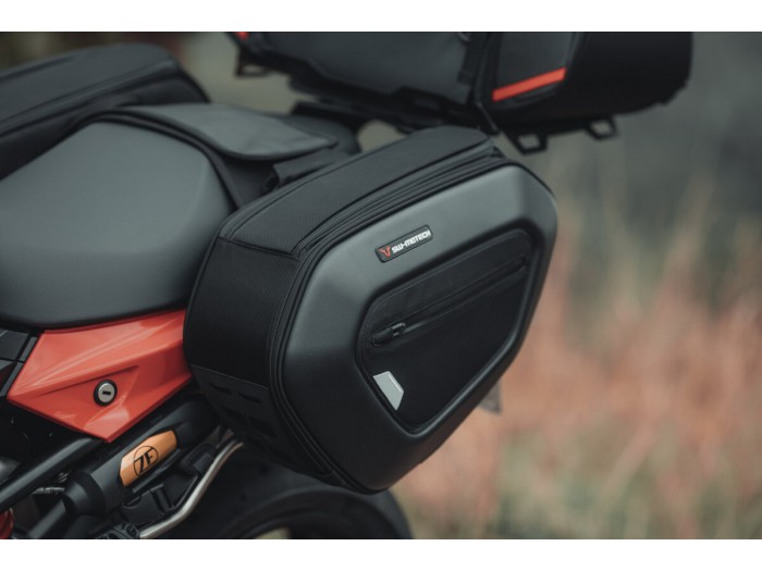 Nowoczesne sakwy Blaze w komplecie ze stelażem są przeznaczone do motocykli sportowych i turystycznych.