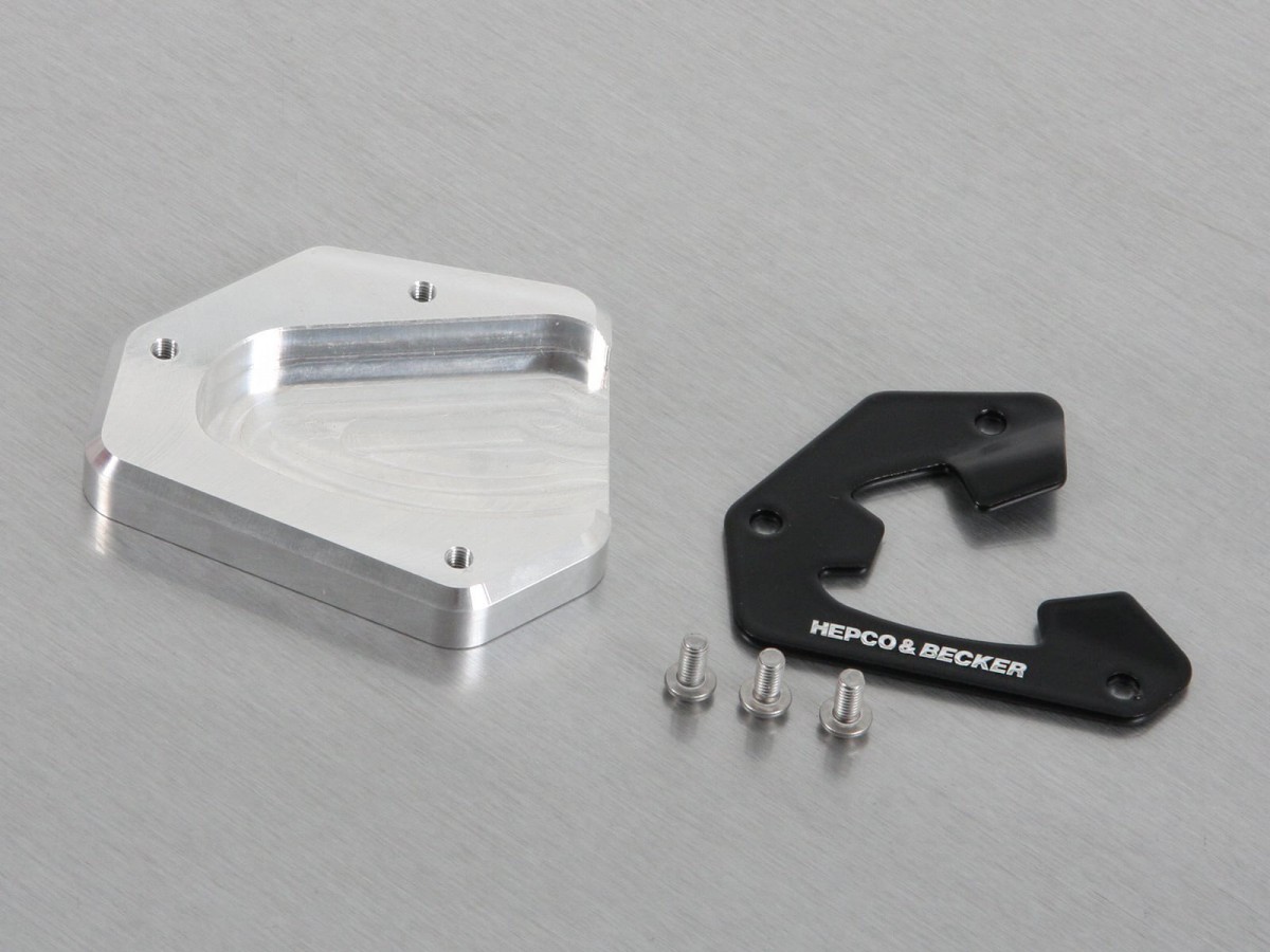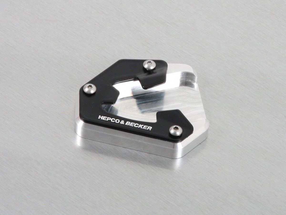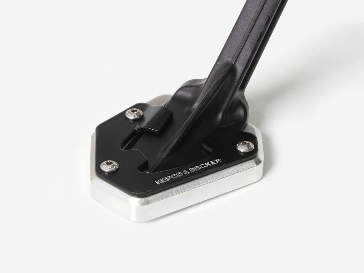 W pełni zapakowany lub na niestabilnym podłożu motocykl grozi łatwym zapadnięciem się na stopce bocznej. Precyzyjnie wyprofilowana, frezowana płyta rozporowa, którą można szybko przykręcić do stopki bocznej i uwolnić od tego zagrożenia, jest już dostępna! Ponad 100% większa powierzchnia. Bezpieczne ustawienie maszyny na wszystkich powierzchniach. Anodowane na czarno, odporne na utlenianie.