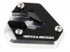 W pełni zapakowany lub na niestabilnym podłożu motocykl grozi łatwym zapadnięciem się na stopce bocznej. Precyzyjnie wyprofilowana, frezowana płyta rozporowa, którą można szybko przykręcić do stopki bocznej i uwolnić od tego zagrożenia, jest już dostępna! Ponad 100% większa powierzchnia. Bezpieczne ustawienie maszyny na wszystkich powierzchniach. Anodowane na czarno, odporne na utlenianie.